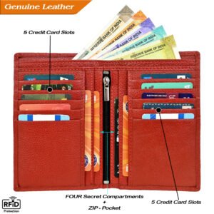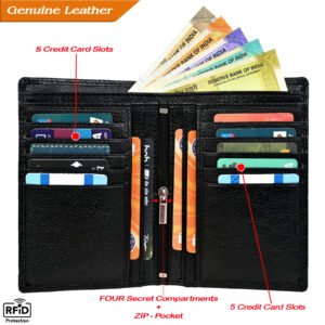 ₹2,599.00Original price was: ₹2,599.00.₹799.00Current price is: ₹799.00. Inclusive of All TaxesMen’s Wallet, Full Grain Leather, Note Case, 10 Card Slots with 1 Zip Pocket, Passport Pocket, 2 Currency and 4 Hidden Compartments, RFID Protected