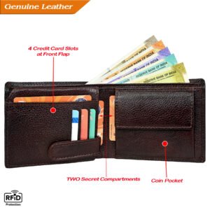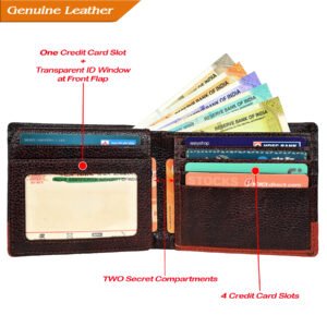 ₹2,199.00Original price was: ₹2,199.00.₹649.00Current price is: ₹649.00. Inclusive of All TaxesMen’s Wallet, Full Grain Leather, Note Case, 6 Card Slots with Coin Pocket, 2 Currency and 2 Hidden Compartments, RFID Protected