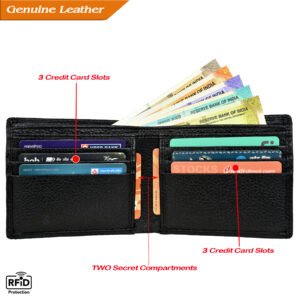 Men’s Wallet, Full Grain Leather, Bi-Fold, 6 Card Slots, RFID Protected | Clover