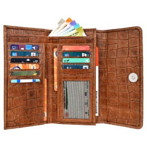 ₹3,499.00Original price was: ₹3,499.00.₹1,049.00Current price is: ₹1,049.00. Inclusive of All TaxesQuilted Ladies Clutch, Waxy Top Grain Leather, Note Book, Multiple Card Slots with 2 Passport Pockets, RFID Protected