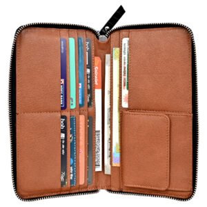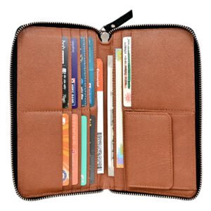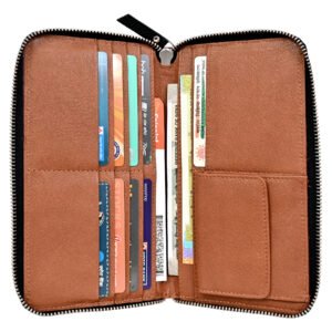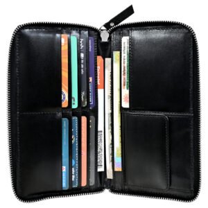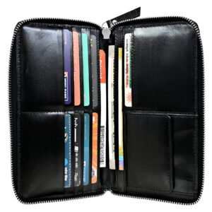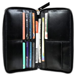 Men’s Wallet, Full Grain Leather, Note Case, 10 Card Slots with 1 Zip Pocket, Passport Pocket, RFID Protected | Clover