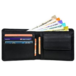 ₹1,499.00Original price was: ₹1,499.00.₹599.00Current price is: ₹599.00. Inclusive of All TaxesMen’s Wallet, Full Grain Leather, Note Case, 4 Card Slots with Coin Pocket, 2 Currency and 3 Hidden Compartments, RFID Protected