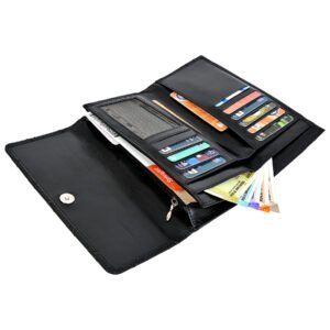 Be the first to review “Bianca Quilted Ladies Clutch, Black, Analine Top Grain Leather, Multiple Card Slots, RFID Protected | Clover”