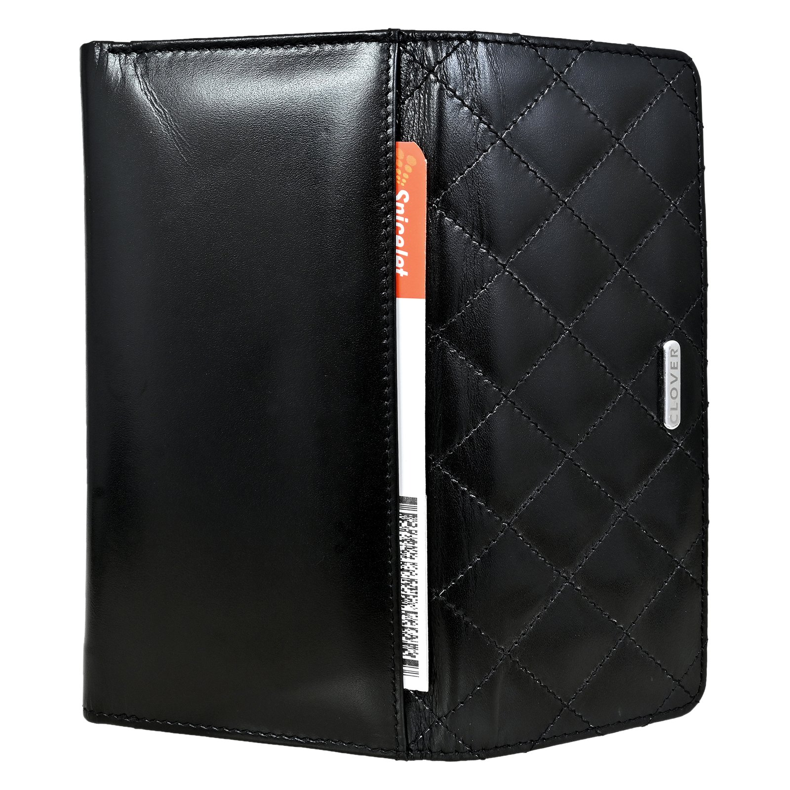 Bianca Quilted Ladies Clutch, Black, Analine Top Grain Leather, Multiple Card Slots, RFID Protected | Clover