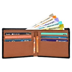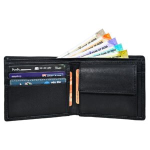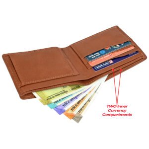 Men’s Wallet, Full Grain Leather, Bi-Fold, 3 Card Slots with Coin Pocket, 2 Currency Compartments, RFID Protected