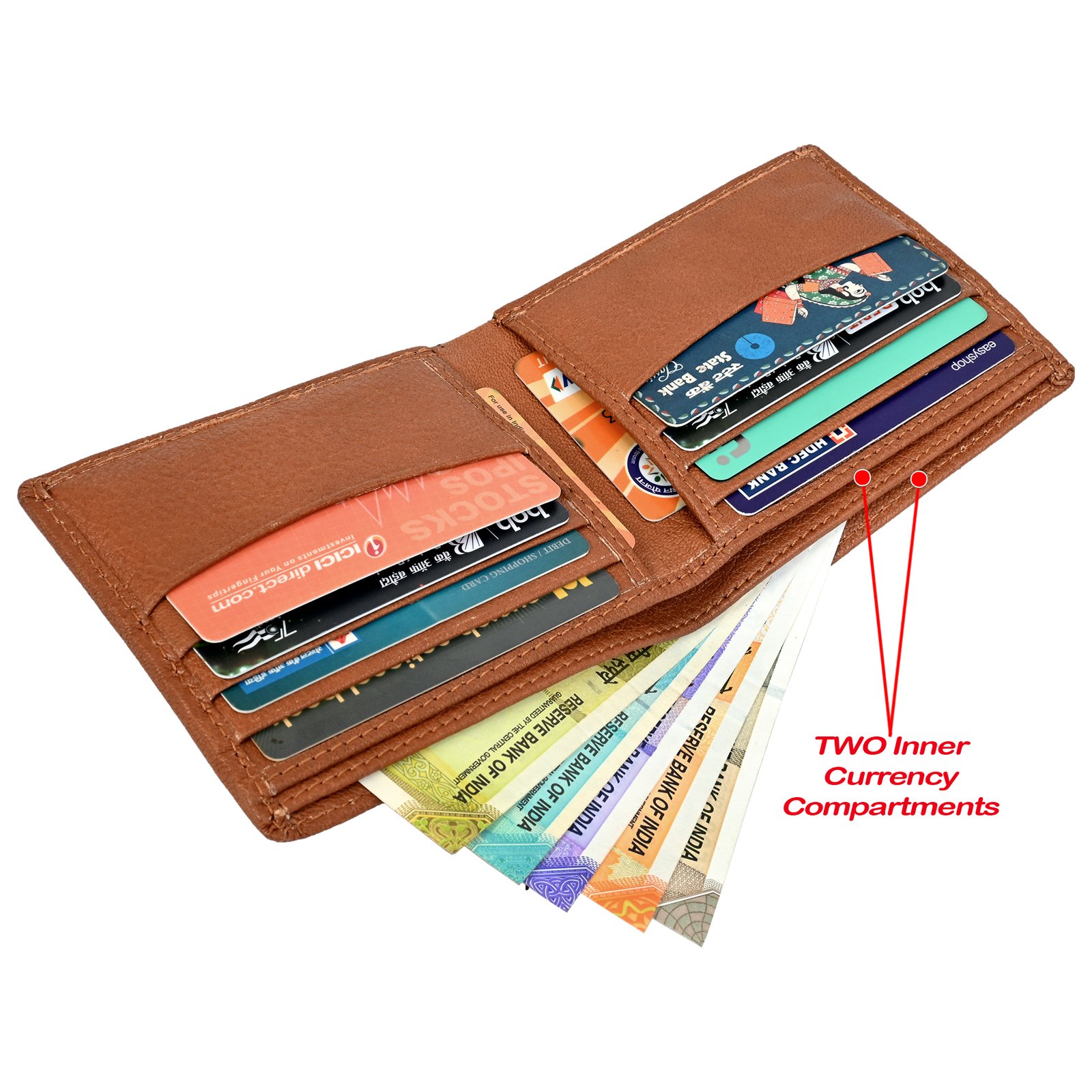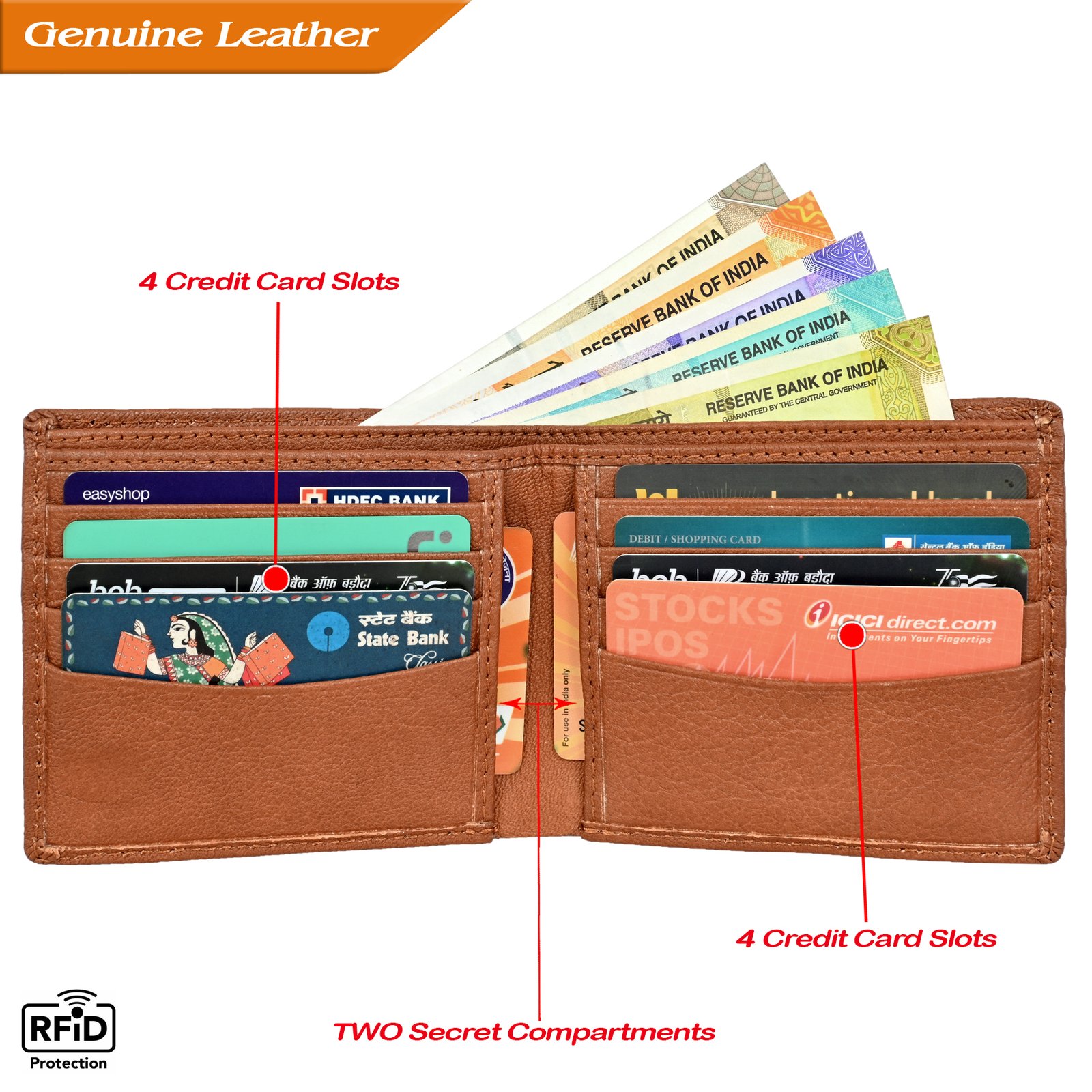 Men’s Wallet, Full Grain Leather, Bi-Fold, 8 Card Slots, 2 Currency and 2 Hidden Compartments, RFID Protected