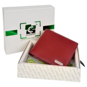 Men’s Wallet, Full Grain Leather, Cherry, Bi-Fold, 7 Card Slots with Coin Pocket, RFID Protected | Clover