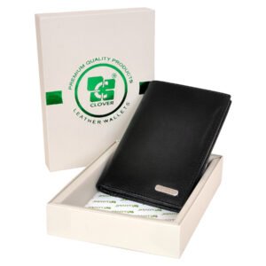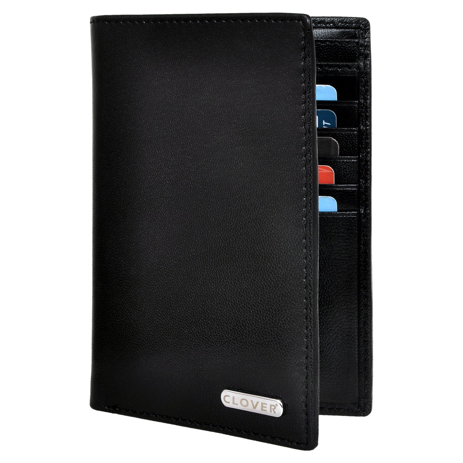 Men’s Wallet, Full Grain Leather, Note Case, 10 Card Slots with Passport Pocket, RFID Protected | Clover