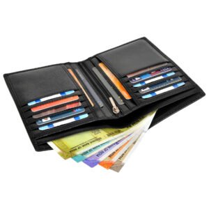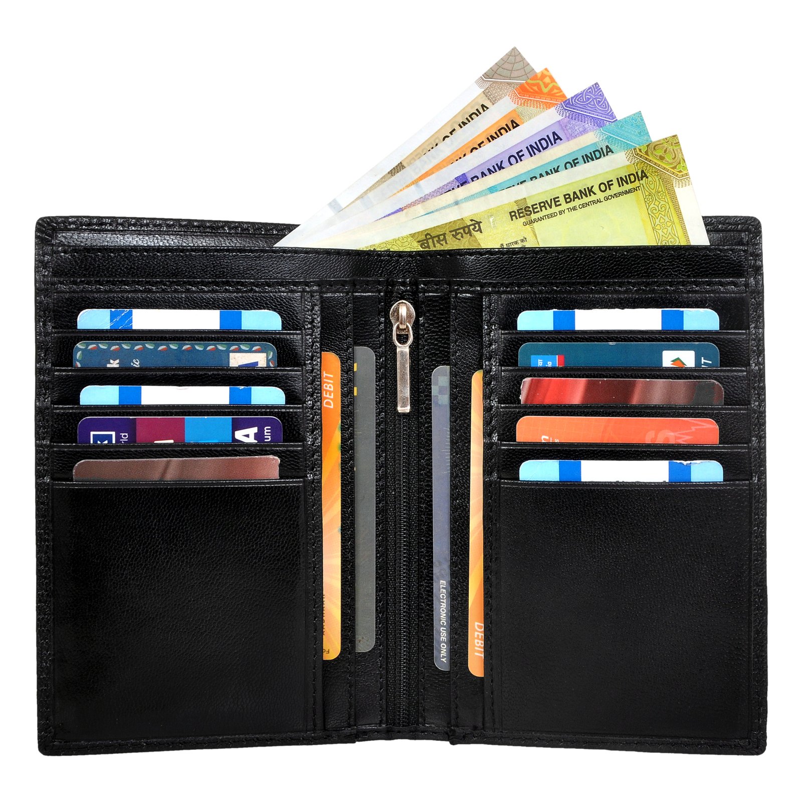Men’s Wallet, Full Grain Leather, Note Case, 10 Card Slots with Passport Pocket, 2 Currency and 6 Hidden Compartments, RFID Protected