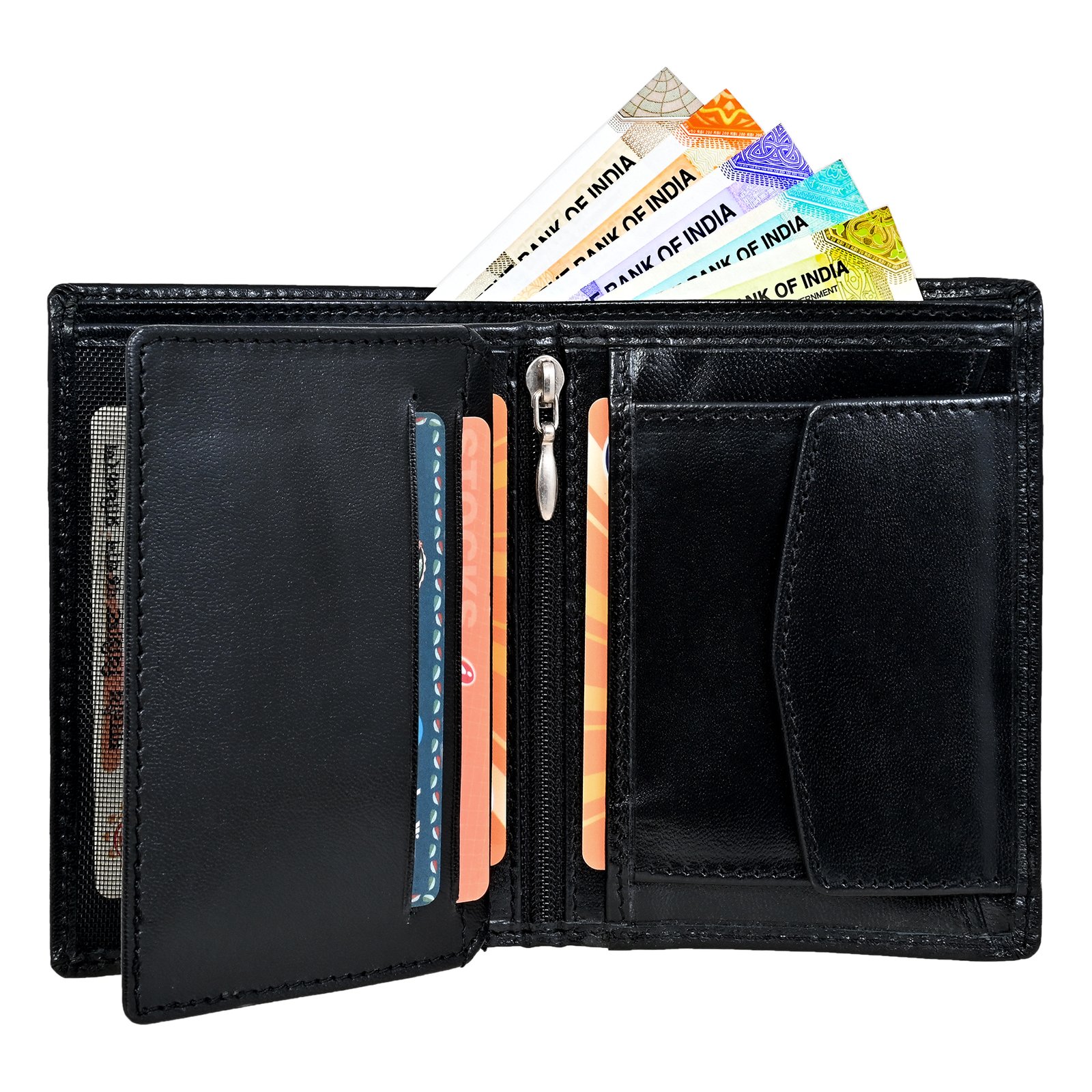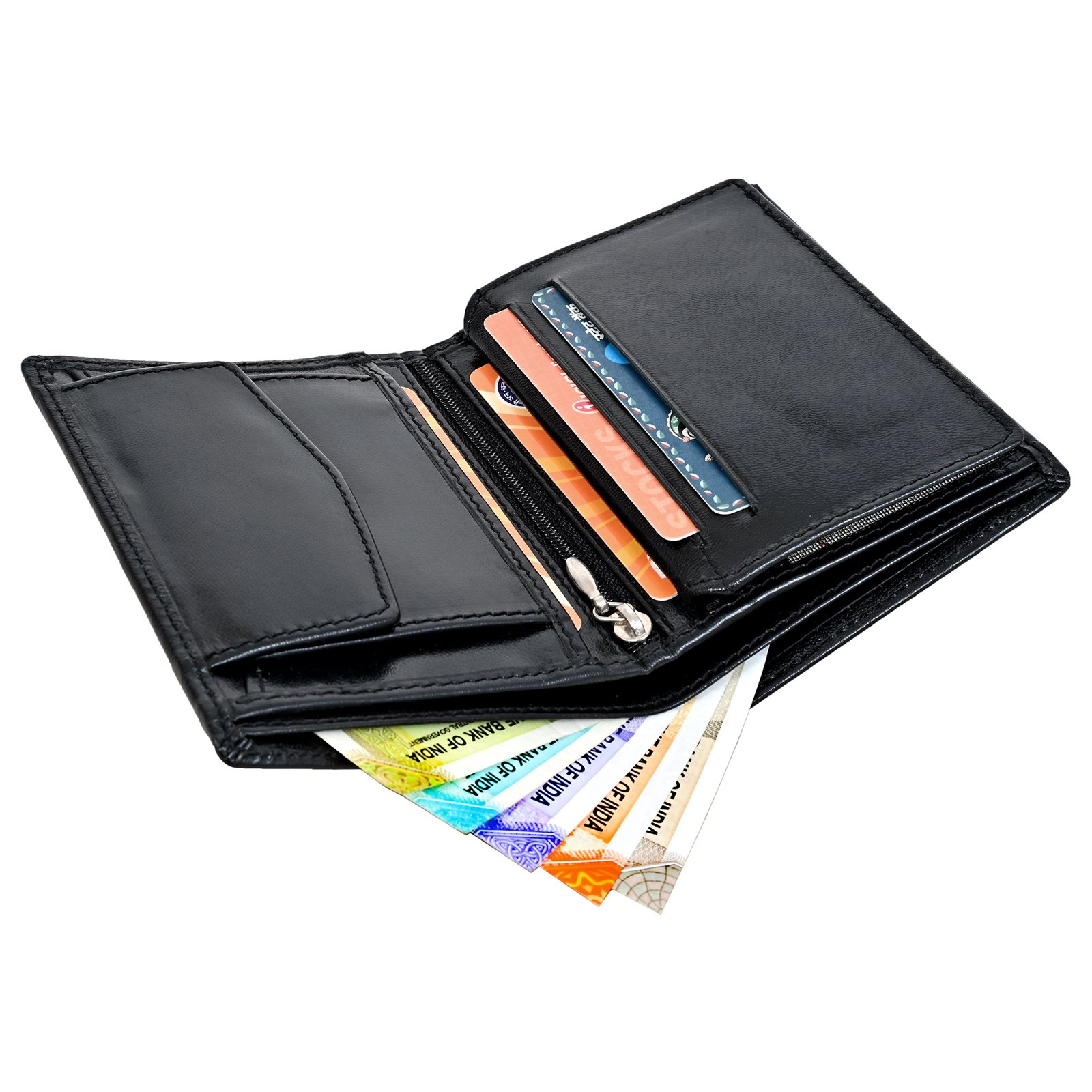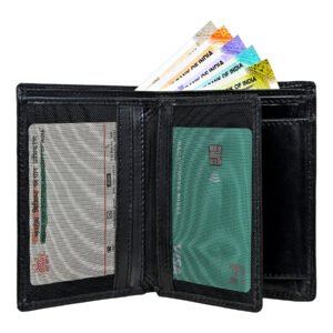 Men’s Wallet, Full Grain Leather, Note Case, 6 Card Slots with Coin Pocket, 2 Currency and 3 Hidden Compartments, RFID Protected