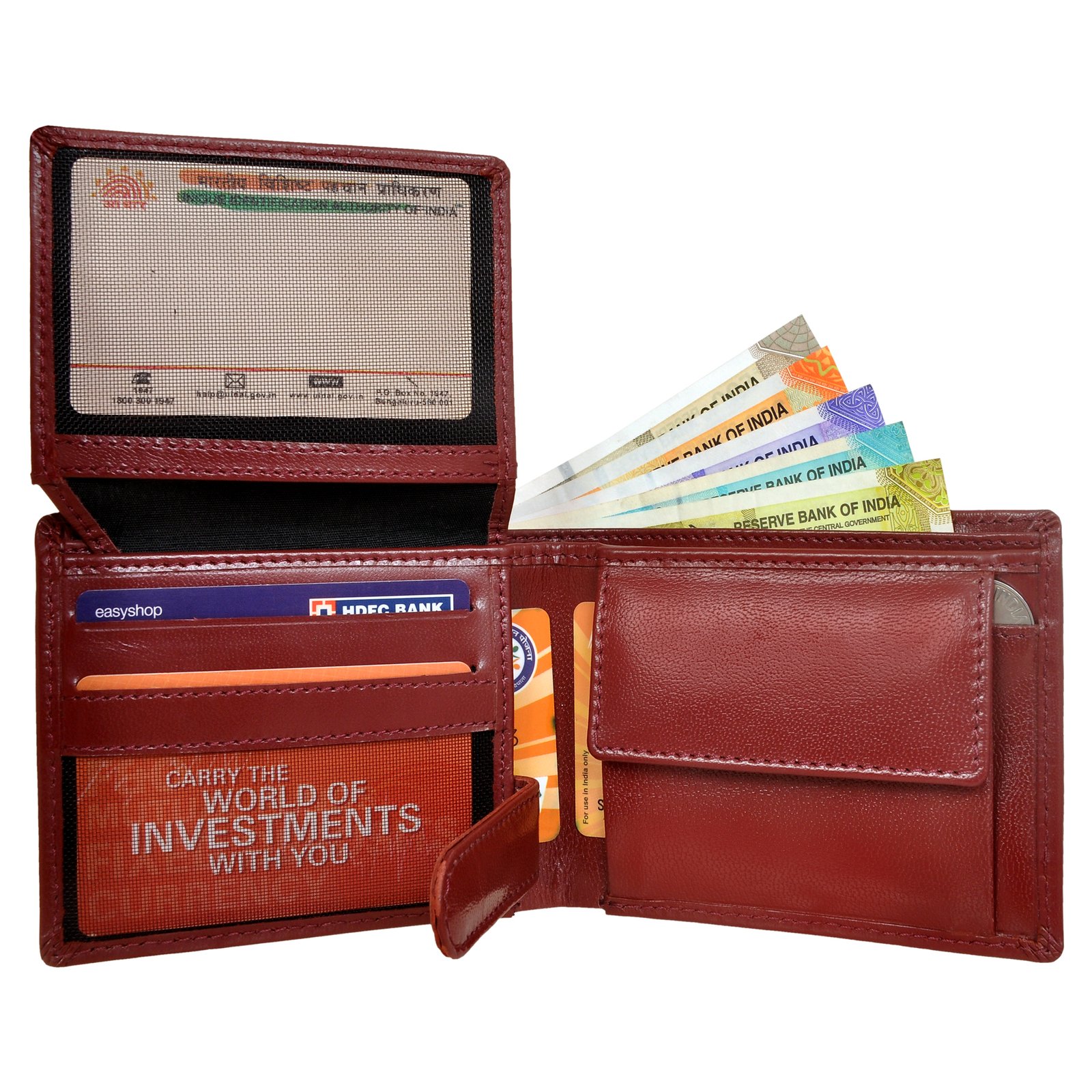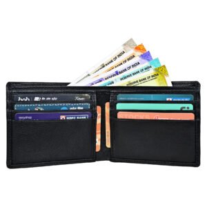 Men’s Wallet, Full Grain Leather, Note Case, 6 Card Slots with Coin Pocket, 2 Currency and 2 Hidden Compartments, RFID Protected