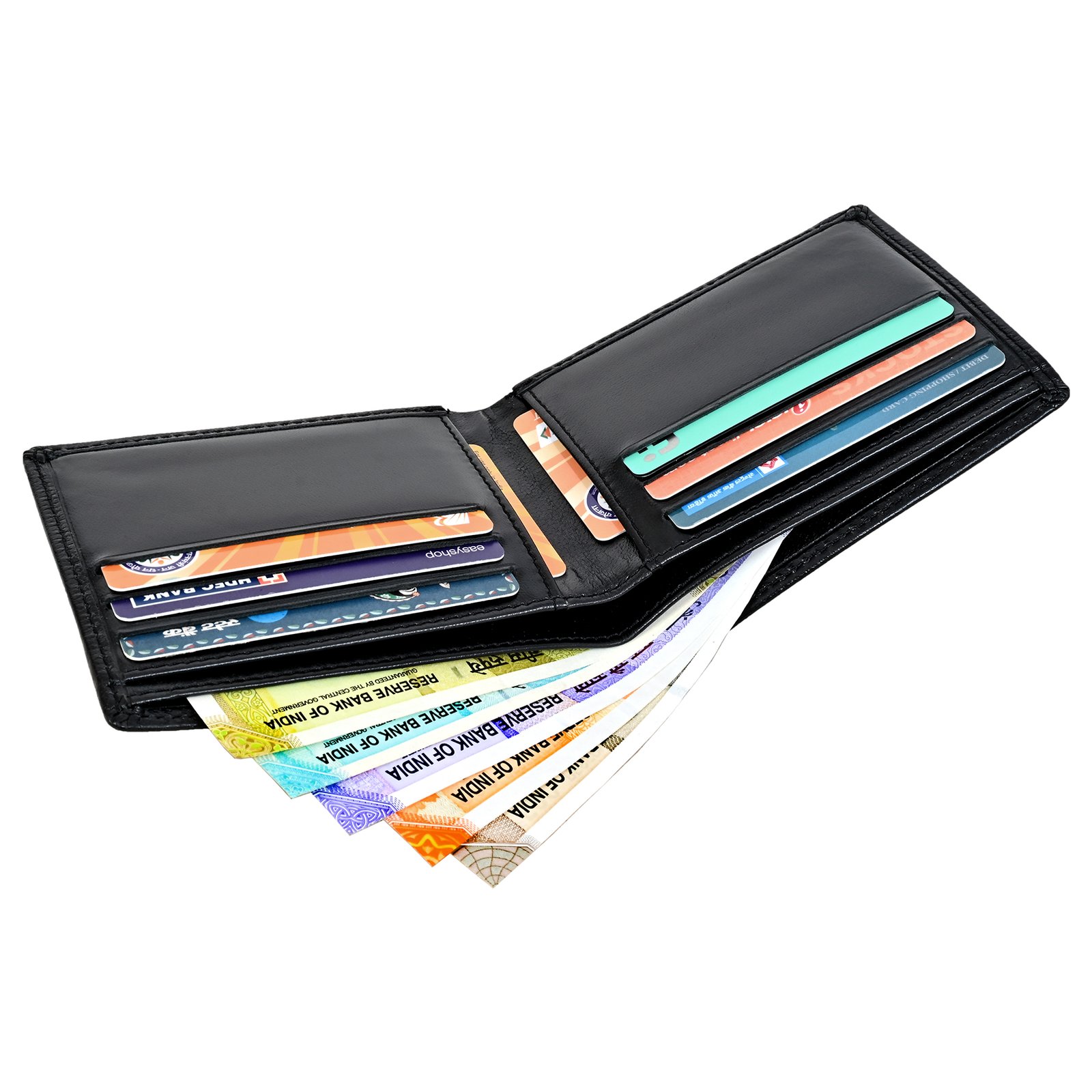 Men’s Wallet, Full Grain Leather, Bi-Fold, 6 Card Slots, 2 Currency and 2 Hidden Compartments, RFID Protected