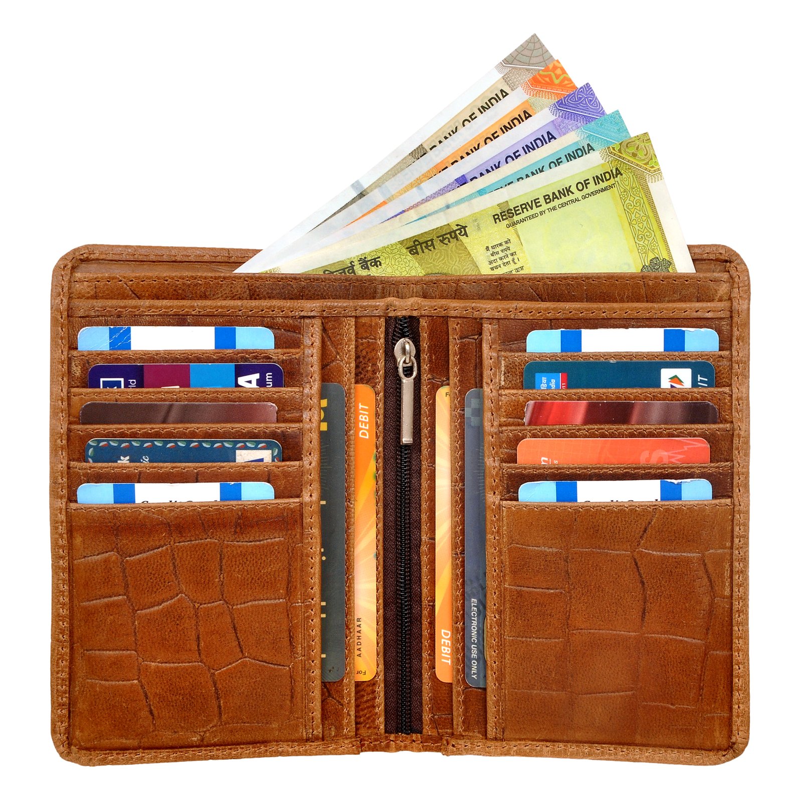 Men’s Wallet, Full Grain Leather, Note Case, 10 Card Slots, 1 Passport Pocket, 2 Currency and 5 Hidden Compartments, RFID Protected