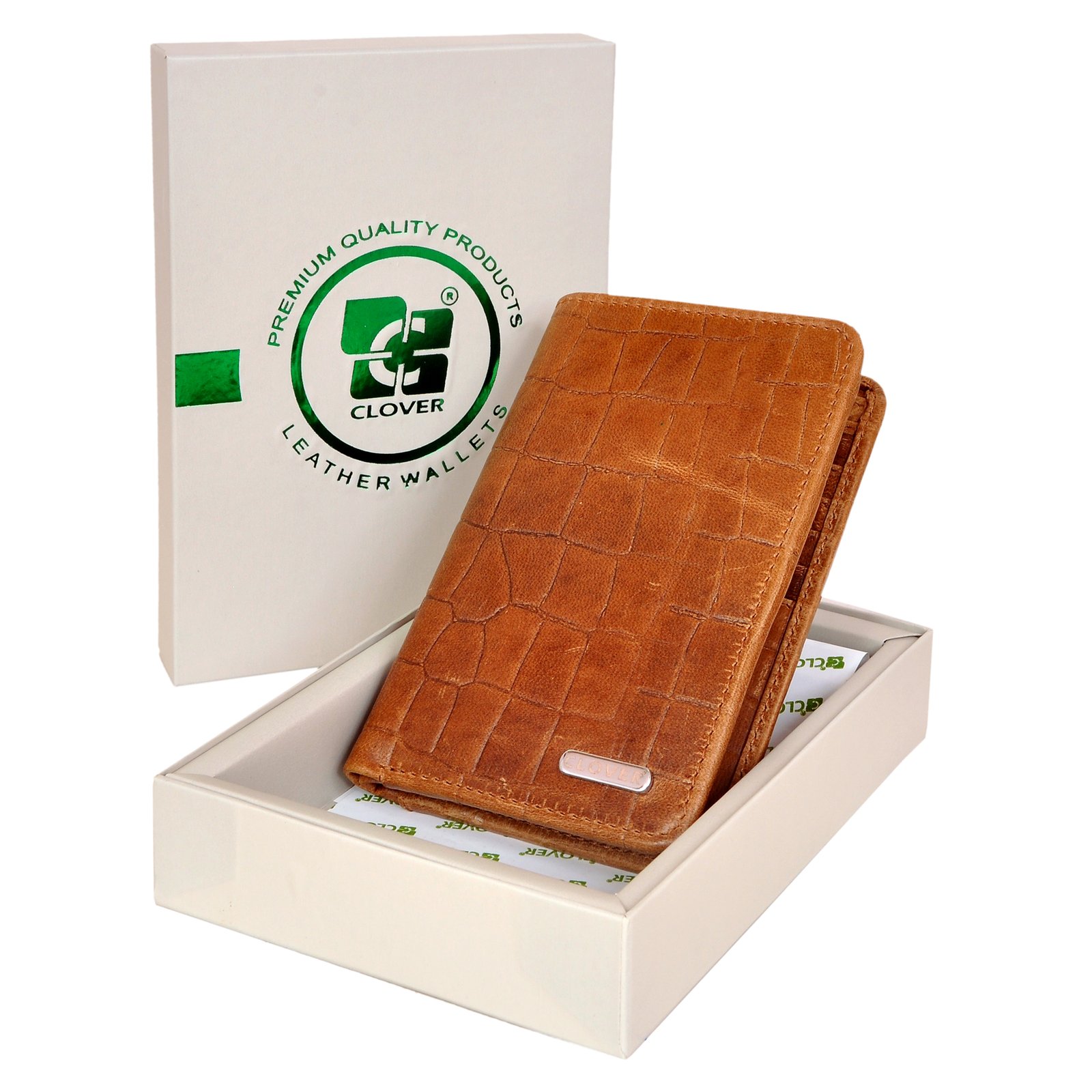 Men’s Wallet, Full Grain Leather, Note Case, 10 Card Slots, 1 Passport Pocket, RFID Protected | Clover