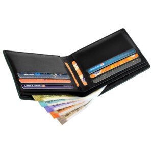 Men’s Wallet, Full Grain Leather, Bi-Fold, 6 Card Slots, 2 Currency and 2 Hidden Compartments, RFID Protected