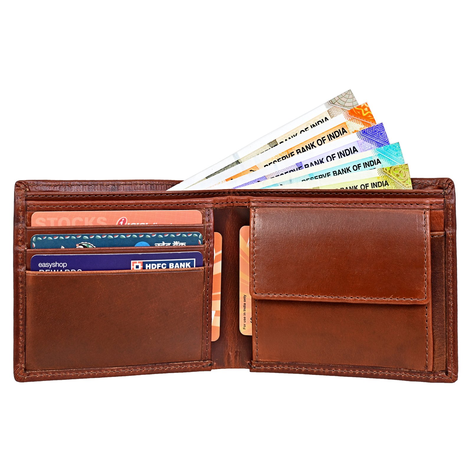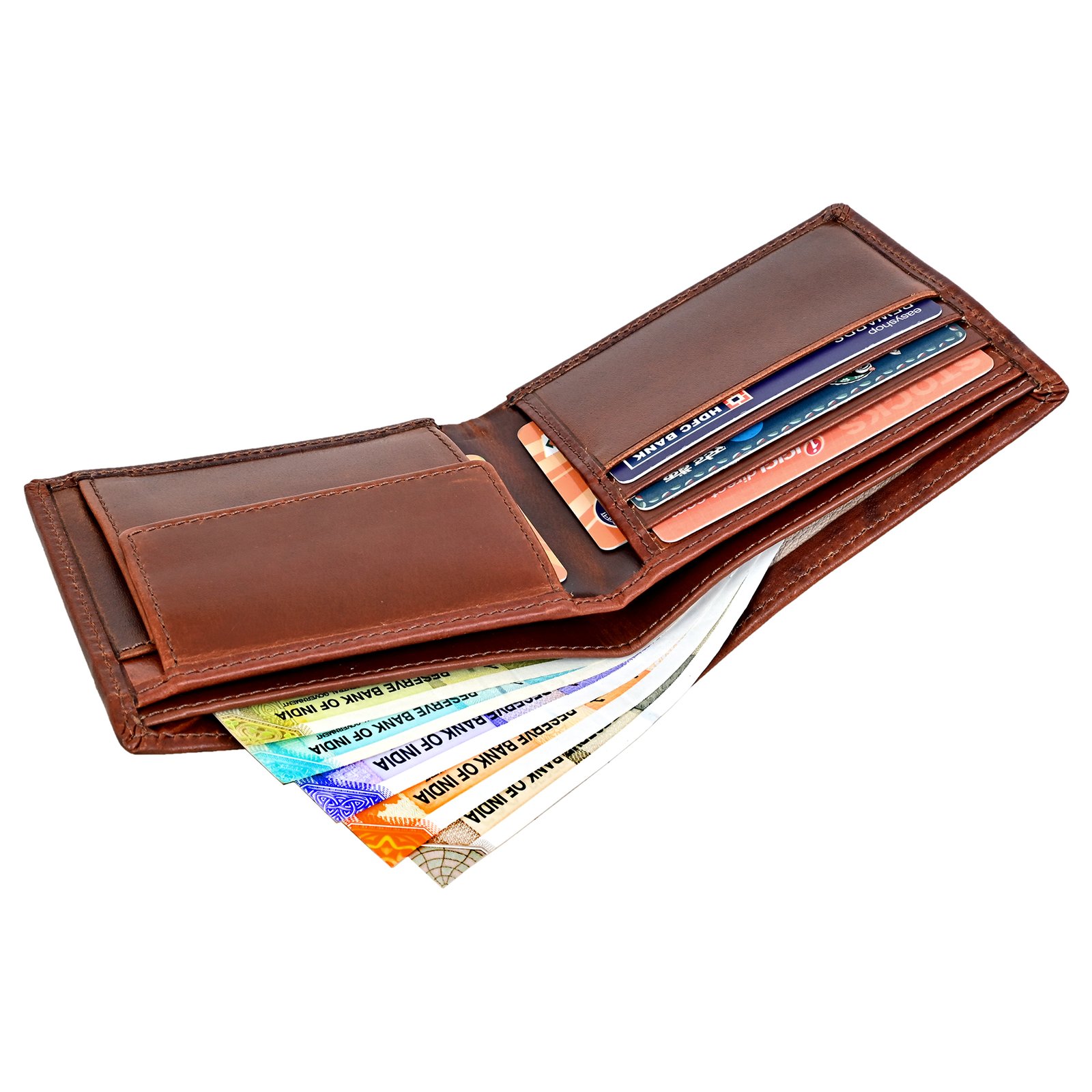 Men’s Wallet, Full Grain Leather, Bi-Fold, 3 Card Slots with Coin Pocket, 2 Currency and 2 Hidden Compartments, RFID Protected
