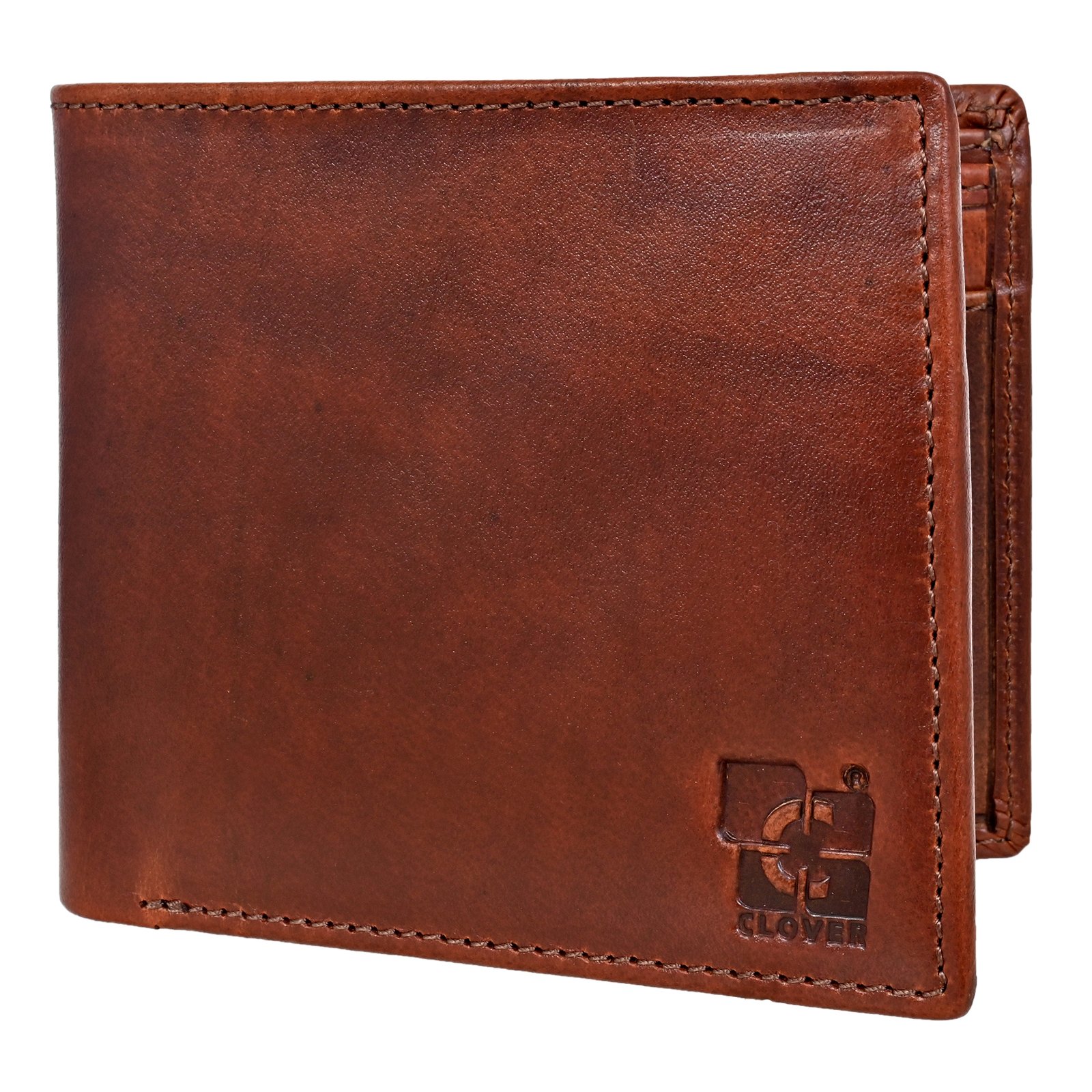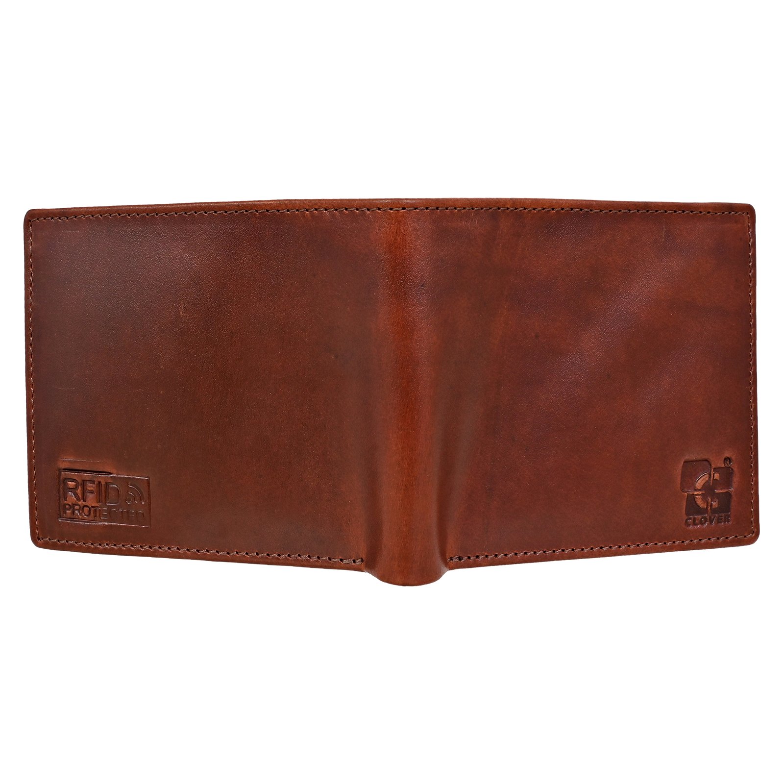 Men’s Wallet, Full Grain Leather, Bi-Fold, 3 Card Slots with Coin Pocket, RFID Protected | Clover
