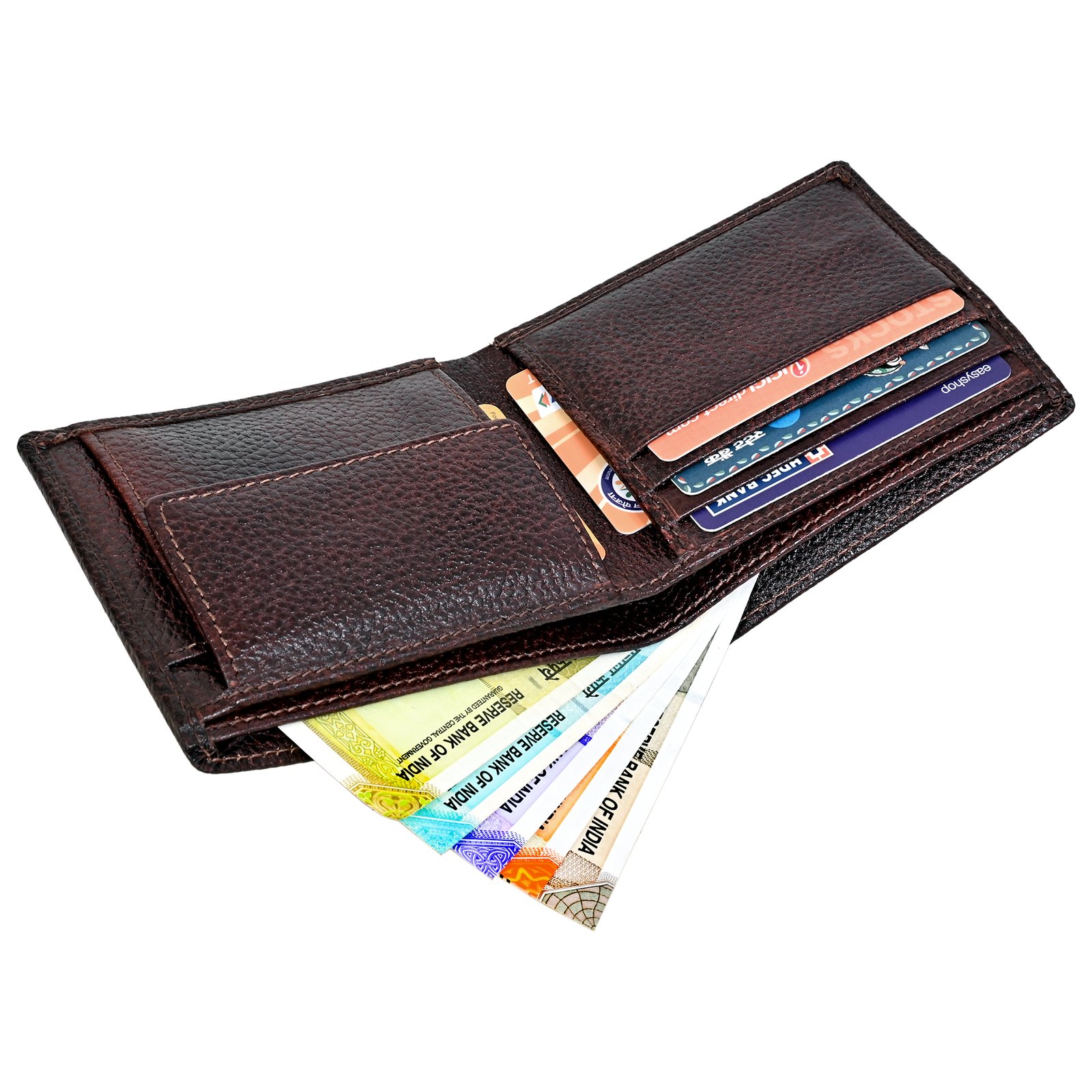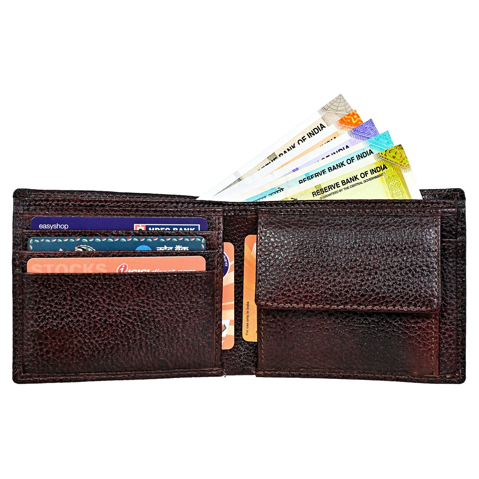 Men’s Wallet, Full Grain Leather, Bi-Fold, 3 Card Slots with Coin Pocket, 2 Currency and 2 Hidden Compartments, RFID Protected