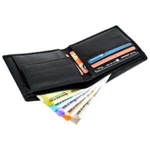 Men’s Wallet, Full Grain Leather, Bi-Fold, 3 Card Slots with Coin Pocket, 2 Currency and 2 Hidden Compartments, RFID Protected