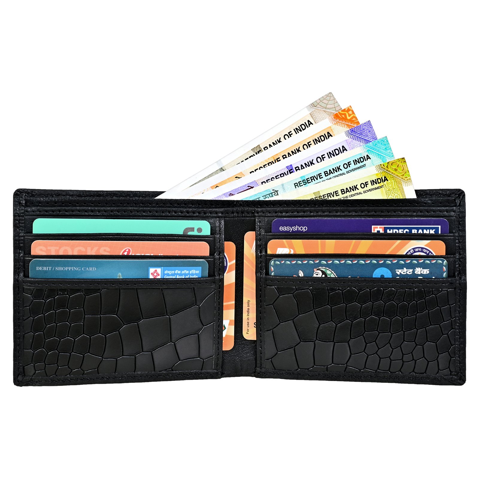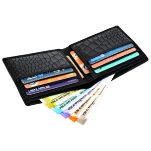 Men’s Wallet, Full Grain Leather, Bi-Fold, 6 Card Slots with Coin Pocket, 2 Currency and 2 Hidden Compartments, RFID Protected