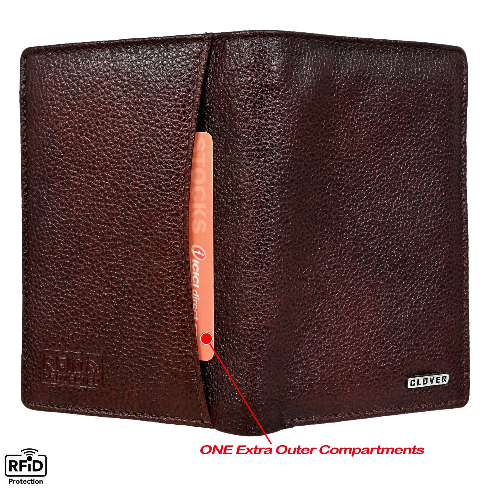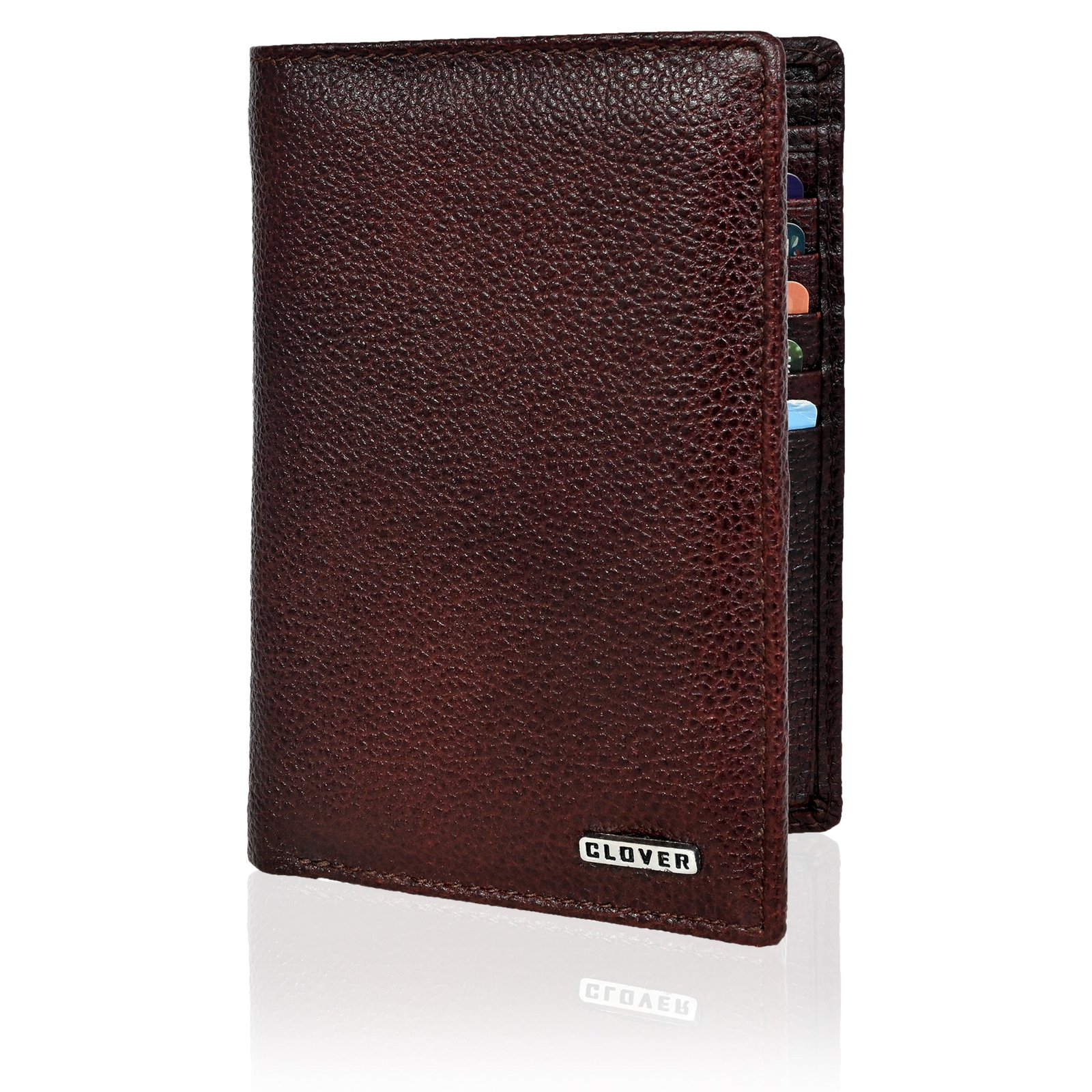 Men’s Wallet, Full Grain Leather, Note Case, 10 Card Slots with 1 Zip Pocket, Passport Pocket, RFID Protected | Clover