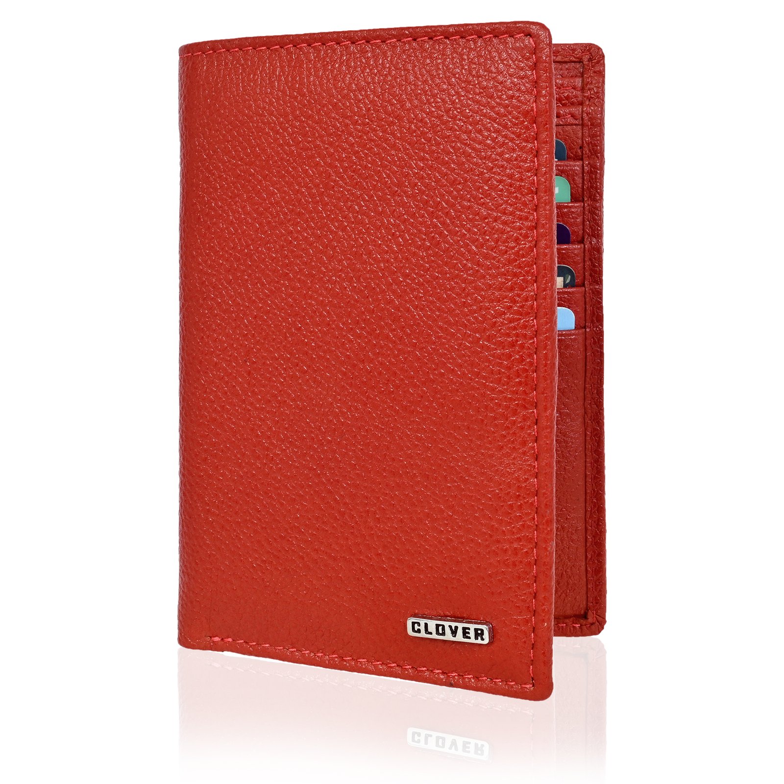 Men’s Wallet, Full Grain Leather, Note Case, 10 Card Slots with 1 Zip Pocket, Passport Pocket, RFID Protected | Clover