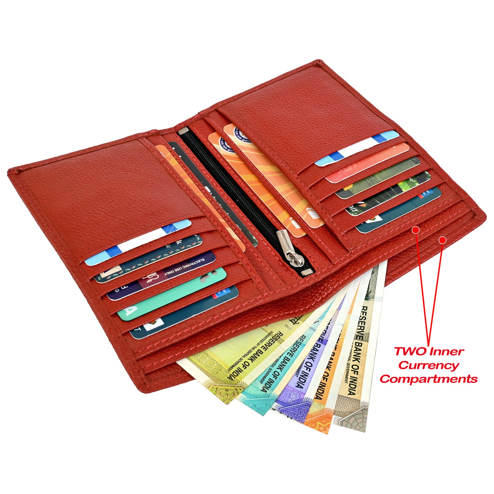 Men’s Wallet, Full Grain Leather, Note Case, Coat Wallet, 10 Card Slots with 1 Zip Pocket, Passport Pocket, 2 Currency and 4 Hidden Compartments, RFID Protected