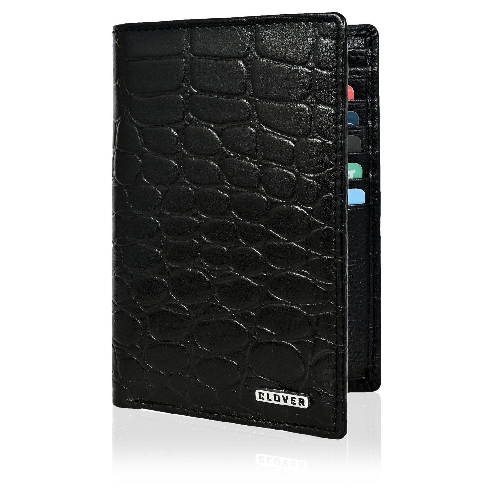 Men’s Wallet, Full Grain Leather, Note Case, 10 Card Slots with 1 Zip Pocket, Passport Pocket, RFID Protected | Clover