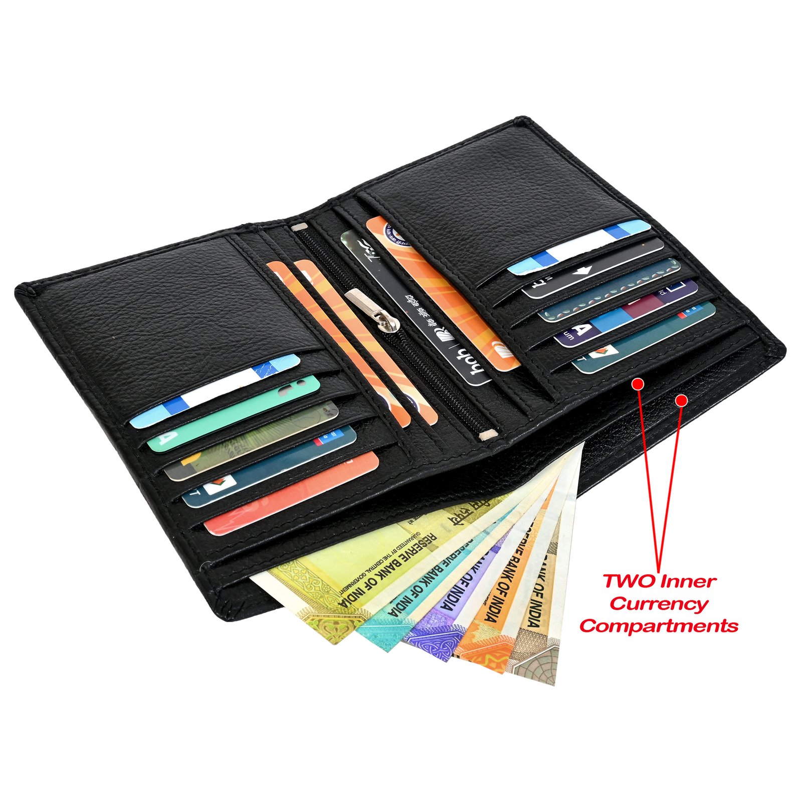 Men’s Wallet, Full Grain Leather, Note Case, Coat Wallet, 10 Card Slots with 1 Zip Pocket, Passport Pocket, 2 Currency and 4 Hidden Compartments, RFID Protected