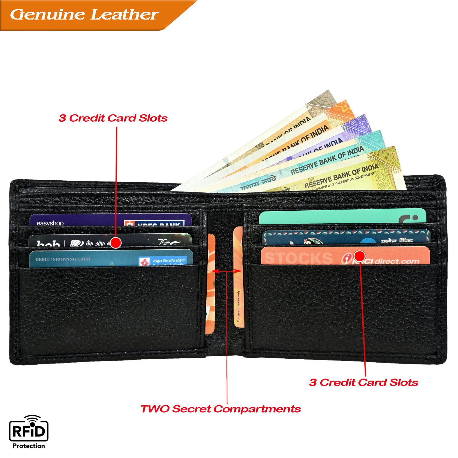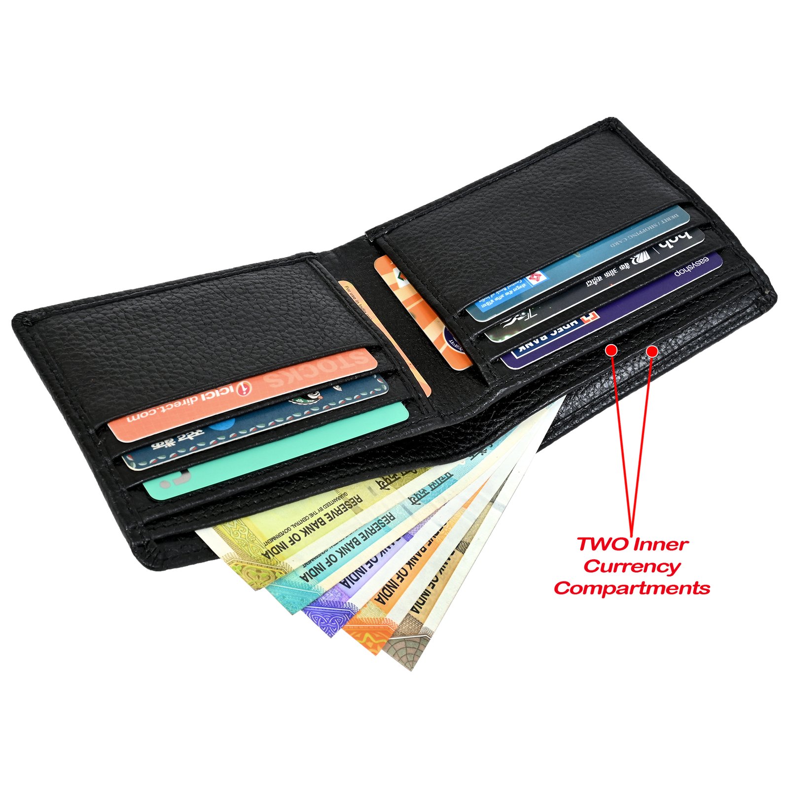 Men’s Wallet, Full Grain Leather, Bi-Fold, 10 Card Slots, 2 Currency and 2 Hidden Compartments, RFID Protected