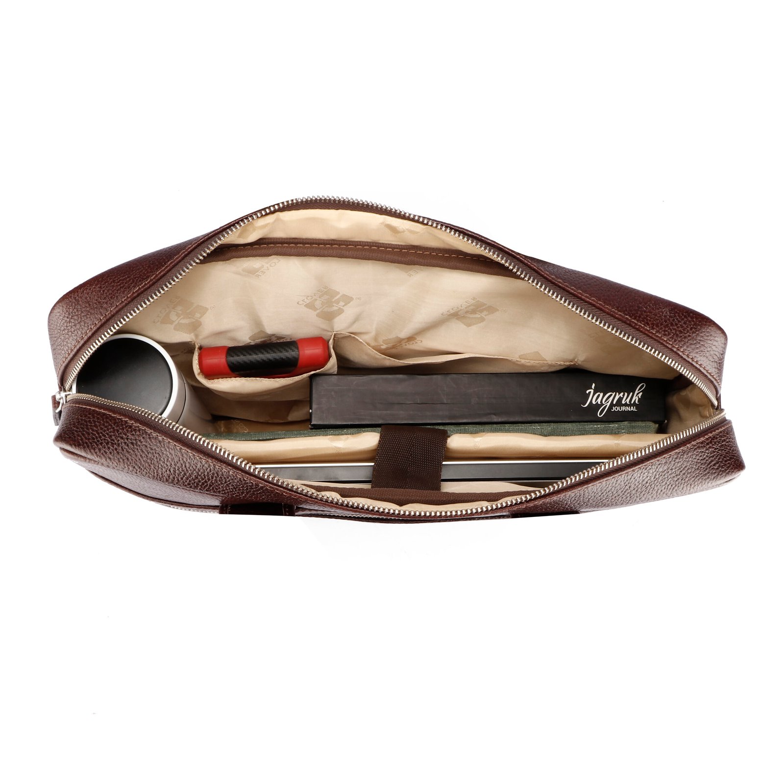 Premium Executive Laptop Bag, Full Grain Leather with Multiple Compartments.