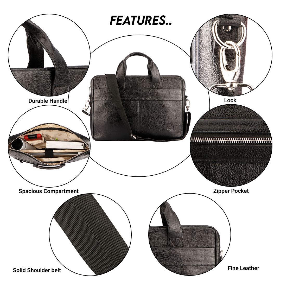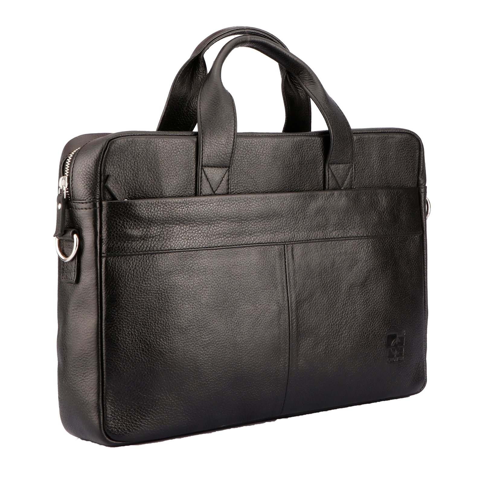 Premium Executive Laptop Bag, Black, Full Grain Leather | Clover