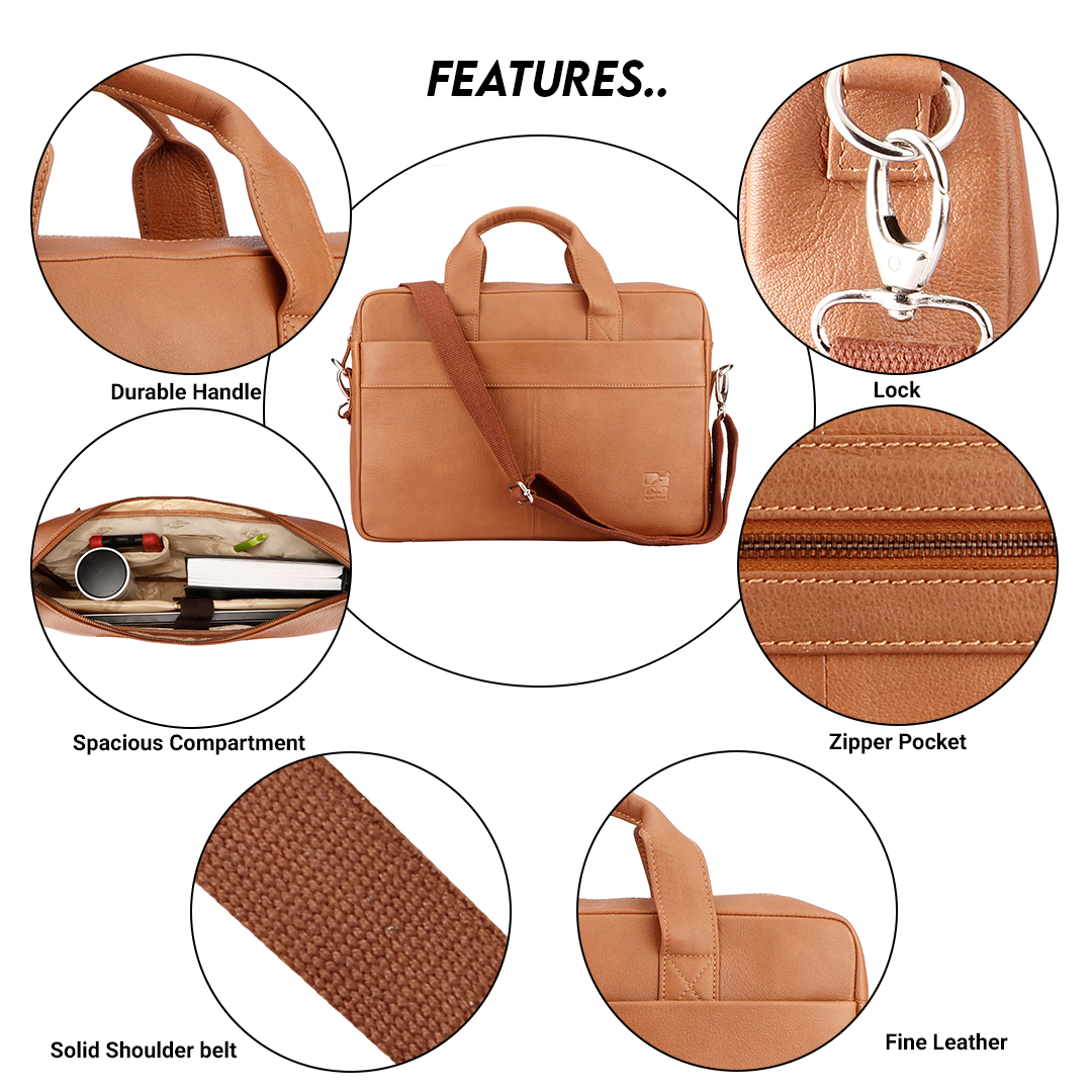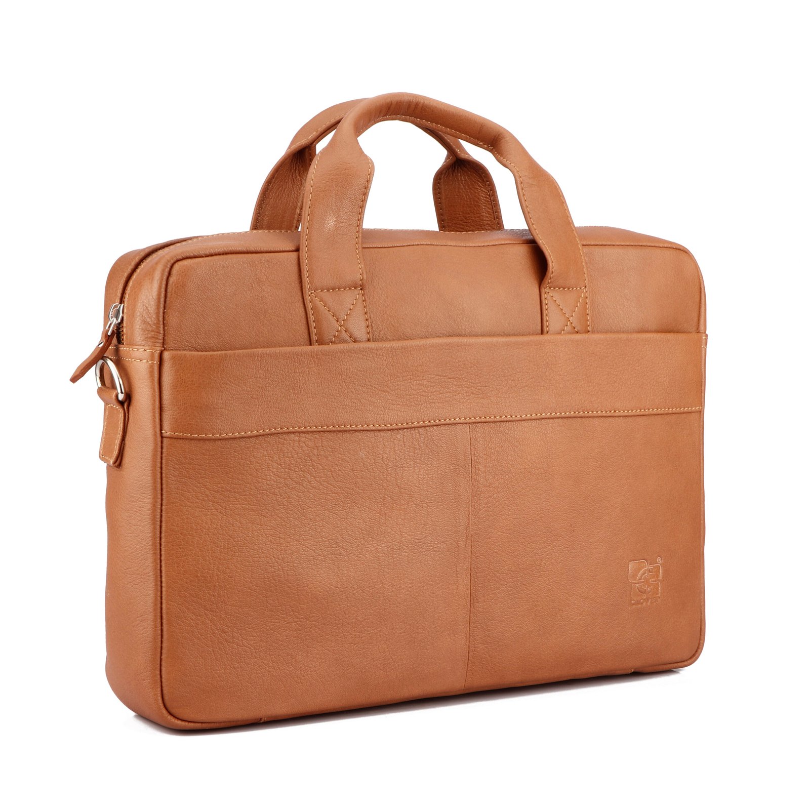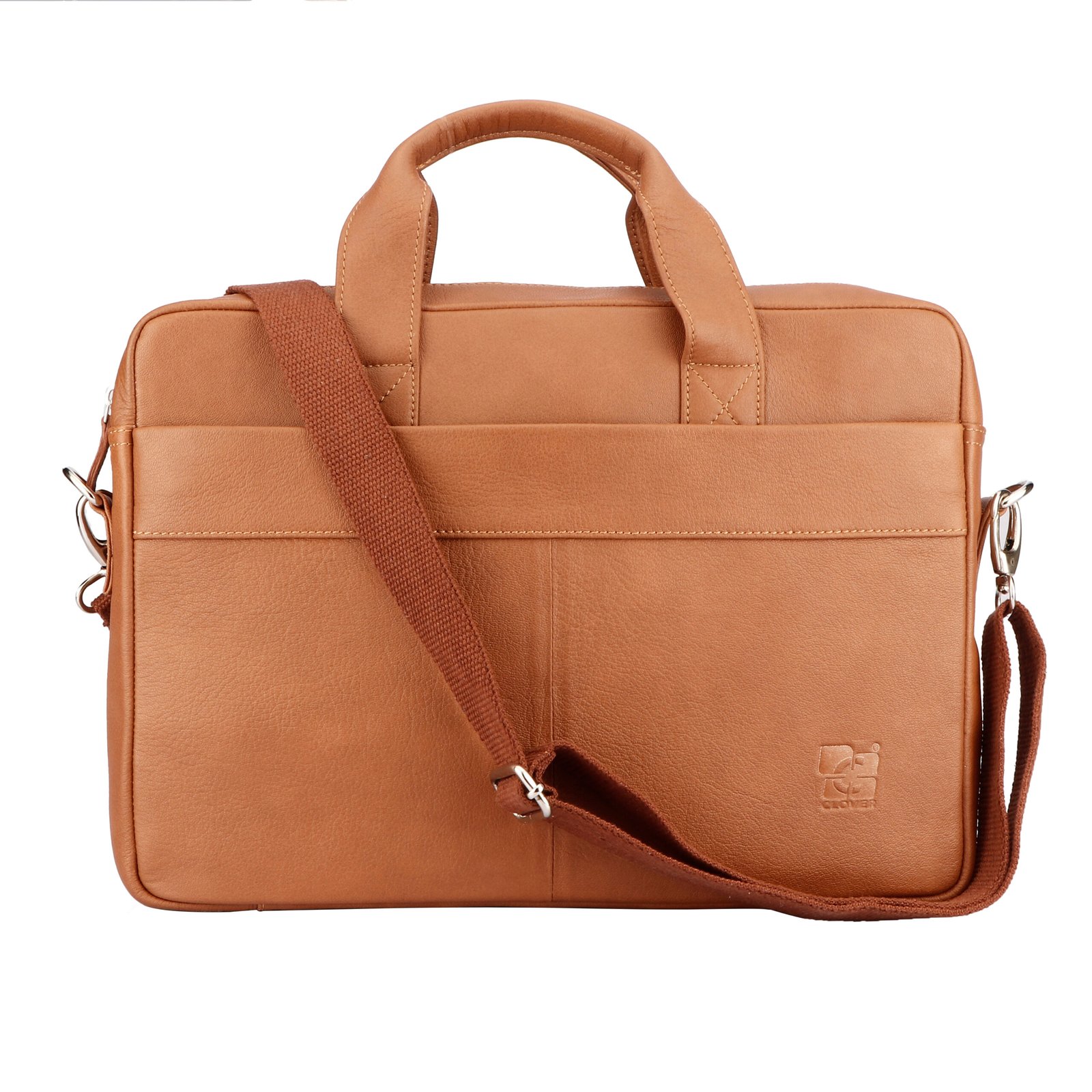 Premium Executive Laptop Bag, Tan, Full Grain Leather | Clover