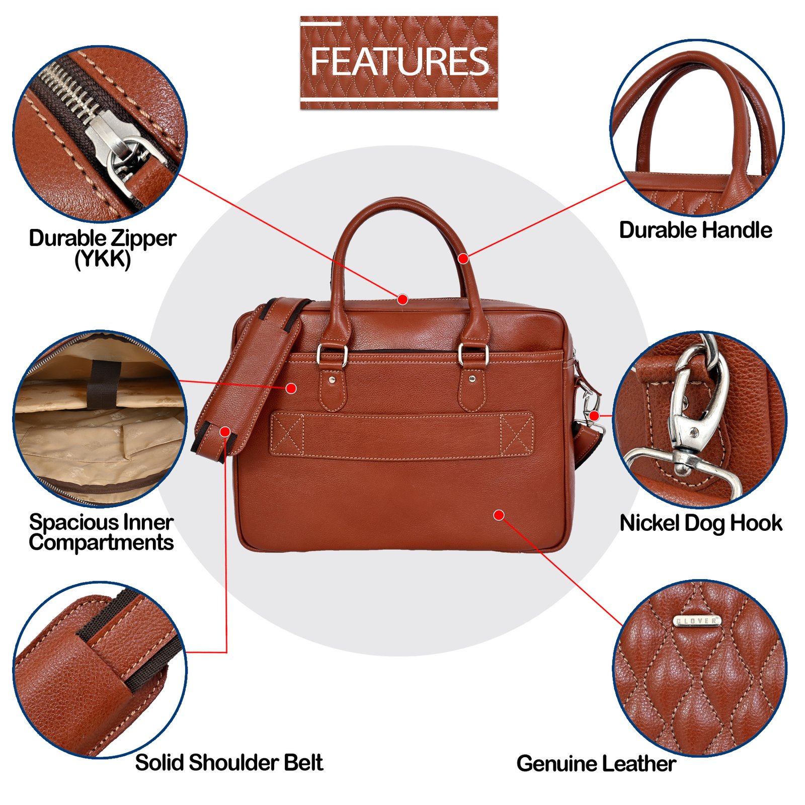 Urban Quilted Luxury Excutive Laptop Bag, Full Grain Leather | Clover