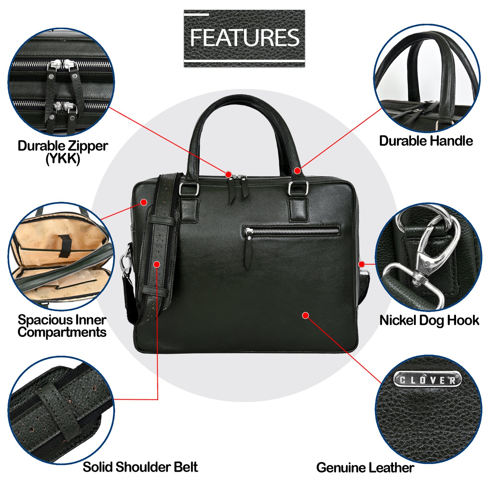 Boss Stylish Executive Leather Lpatop Bag, Full Grain Leather | Clover
