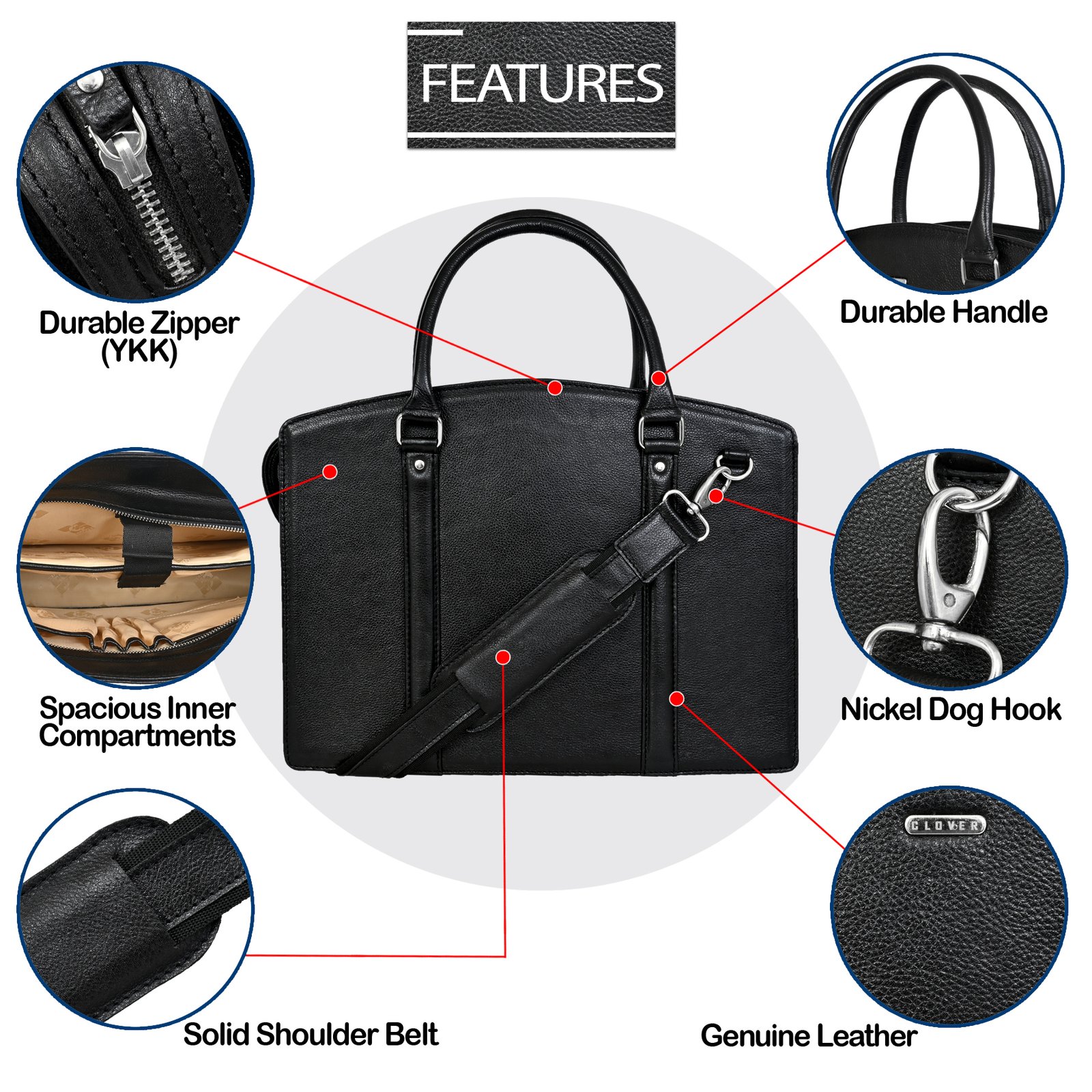 Oxford Premium Executive Laptop Bag, Black, Full Grain Leather | Clover