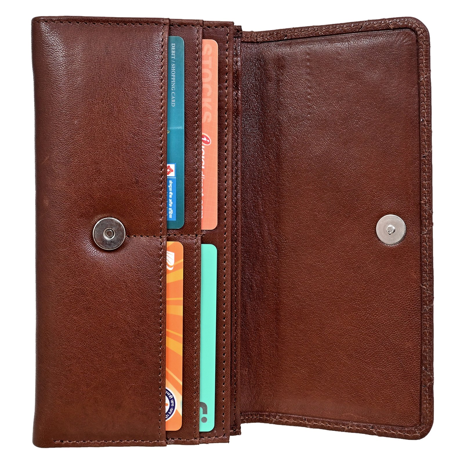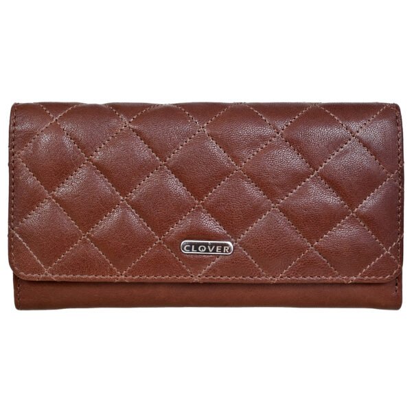 Bianca Quilted Ladies Clutch, Brown, Mild Top Grain Leather, Multiple Card Slots, RFID Protected | Clover