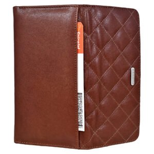 Quilted Ladies Clutch, Top Grain Leather, Note Book, Multiple Cards Slots with 2 Passport Pockets, RFID Protected