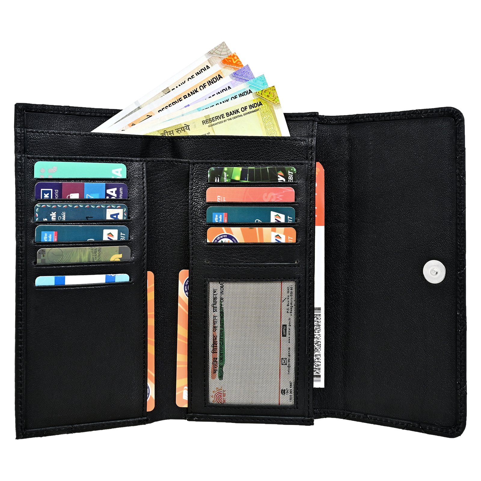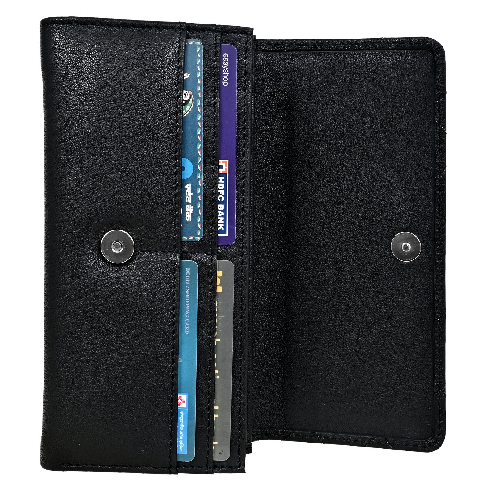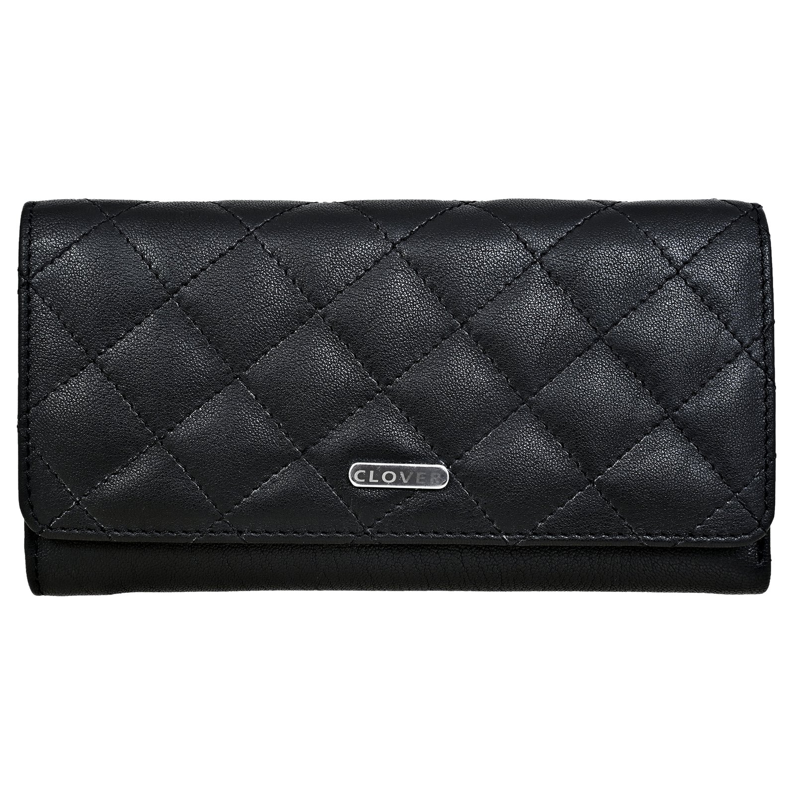 Bianca Quilted Ladies Clutch, Black, Mild Top Grain Leather, Multiple Card Slots, RFID Protected | Clover