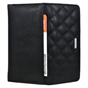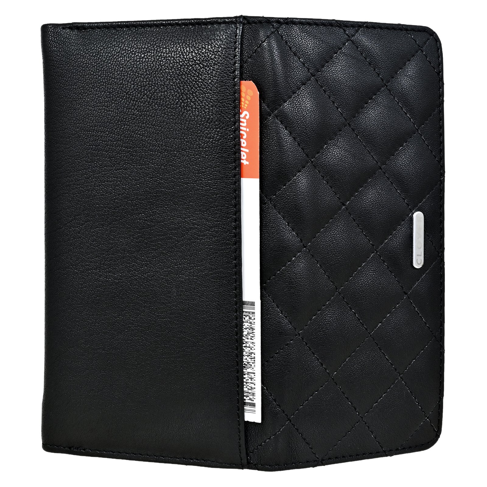 Quilted Ladies Clutch, Mild Top Grain Leather, Note Book, Multiple Card Slots with 2 Passport Pockets, RFID Protected