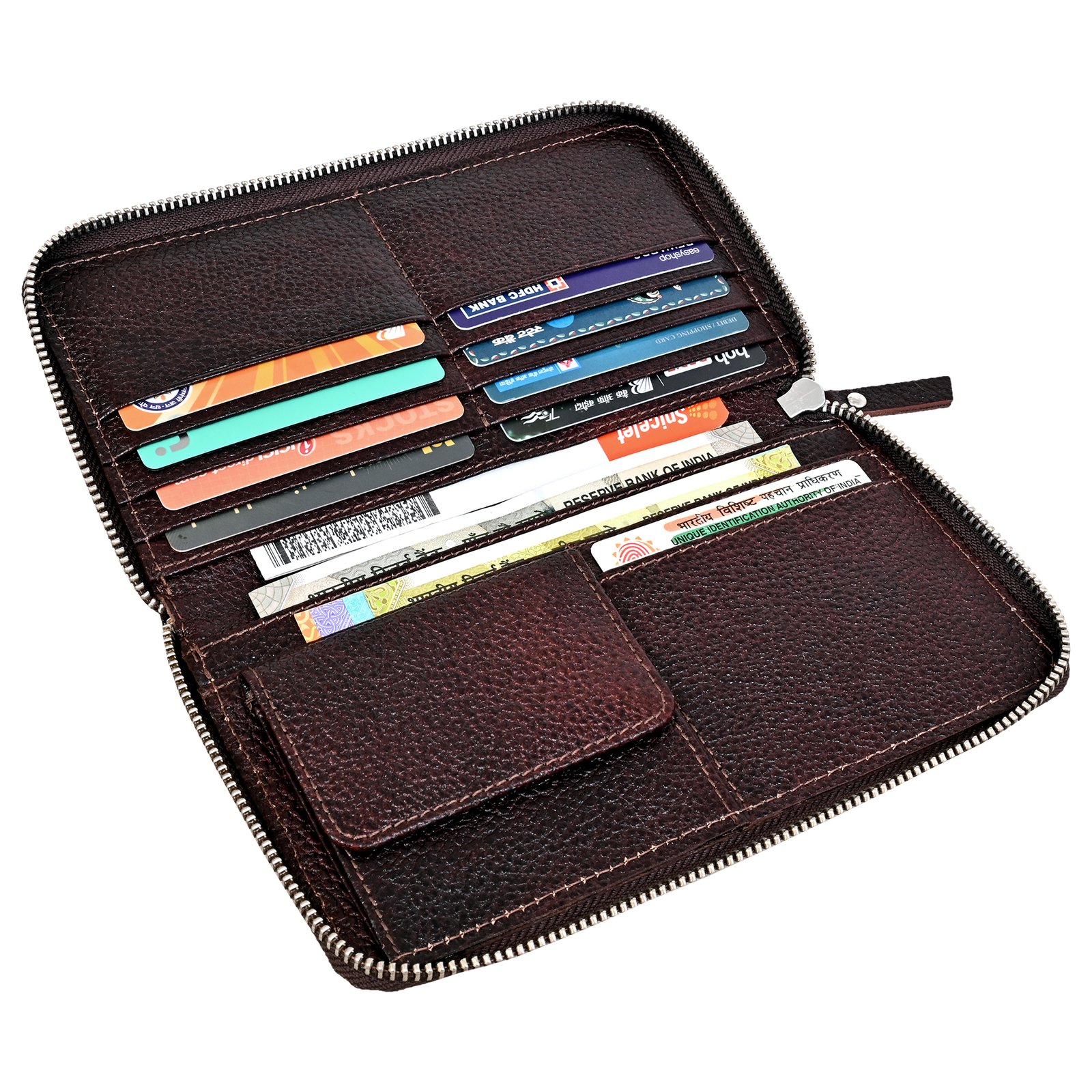 Ladies Clutch, Top Grain Leather, Zip Closer, Multiple Card Slots with Coin Pocket, RFID Protected