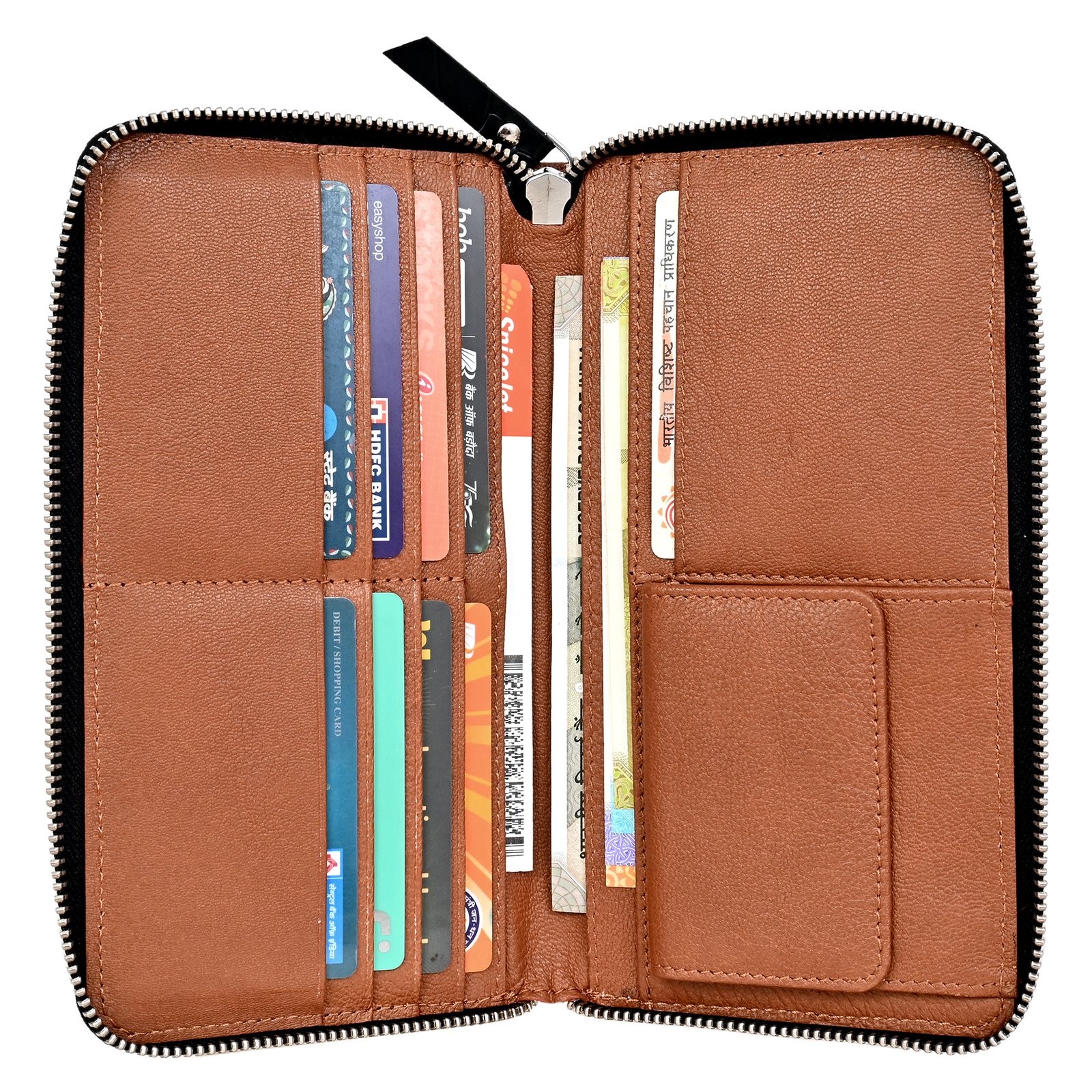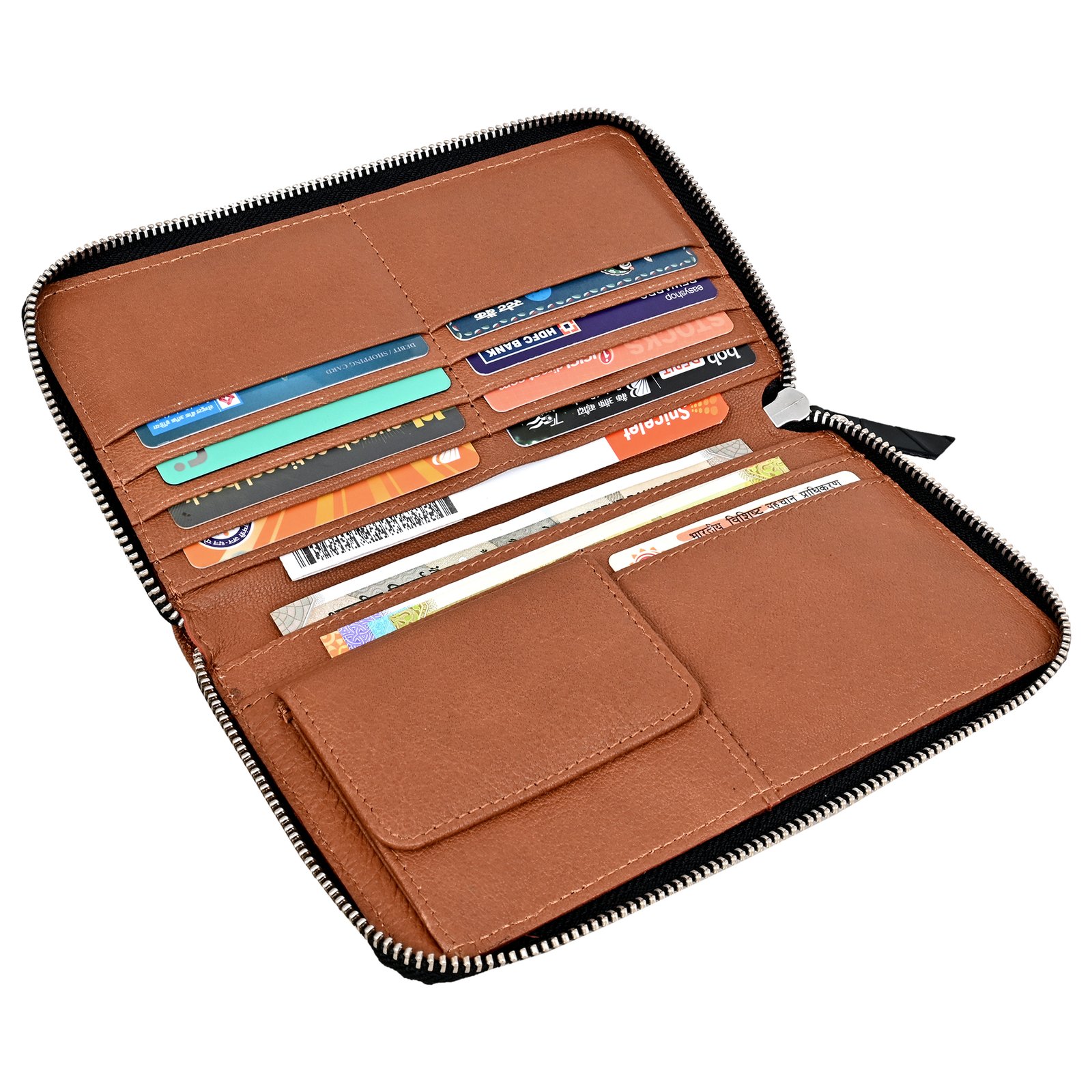 Ladies Clutch, Top Grain Leather, Zip Closer, Multiple Card Slots with Coin Pocket, RFID Protected