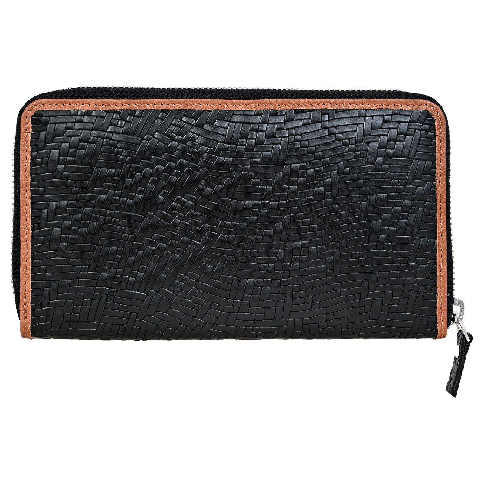 Ladies’ Net-Finished Leather Wallet – RFID Protected (Black with Tan)