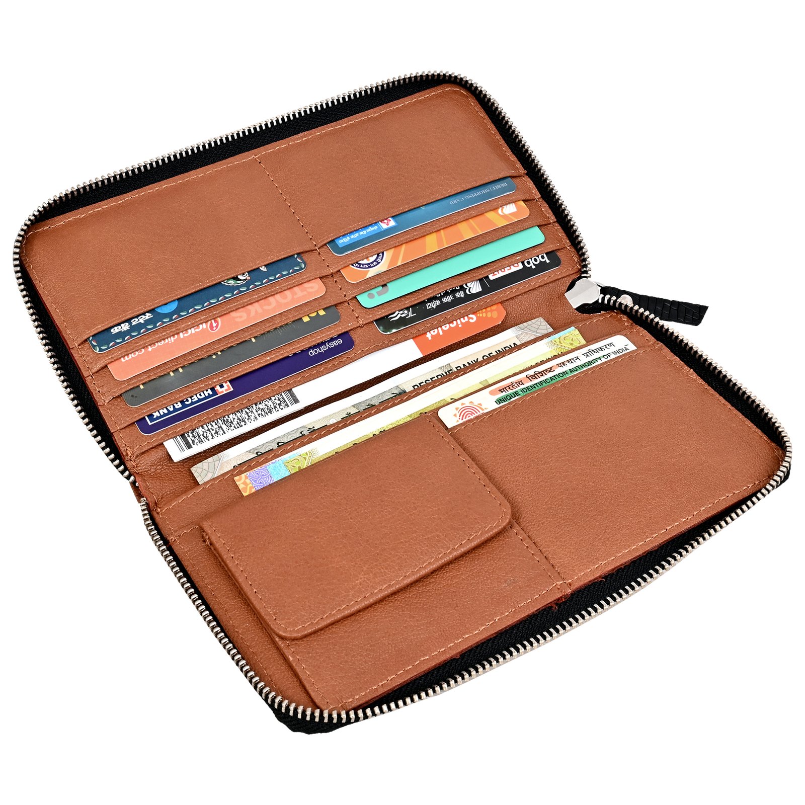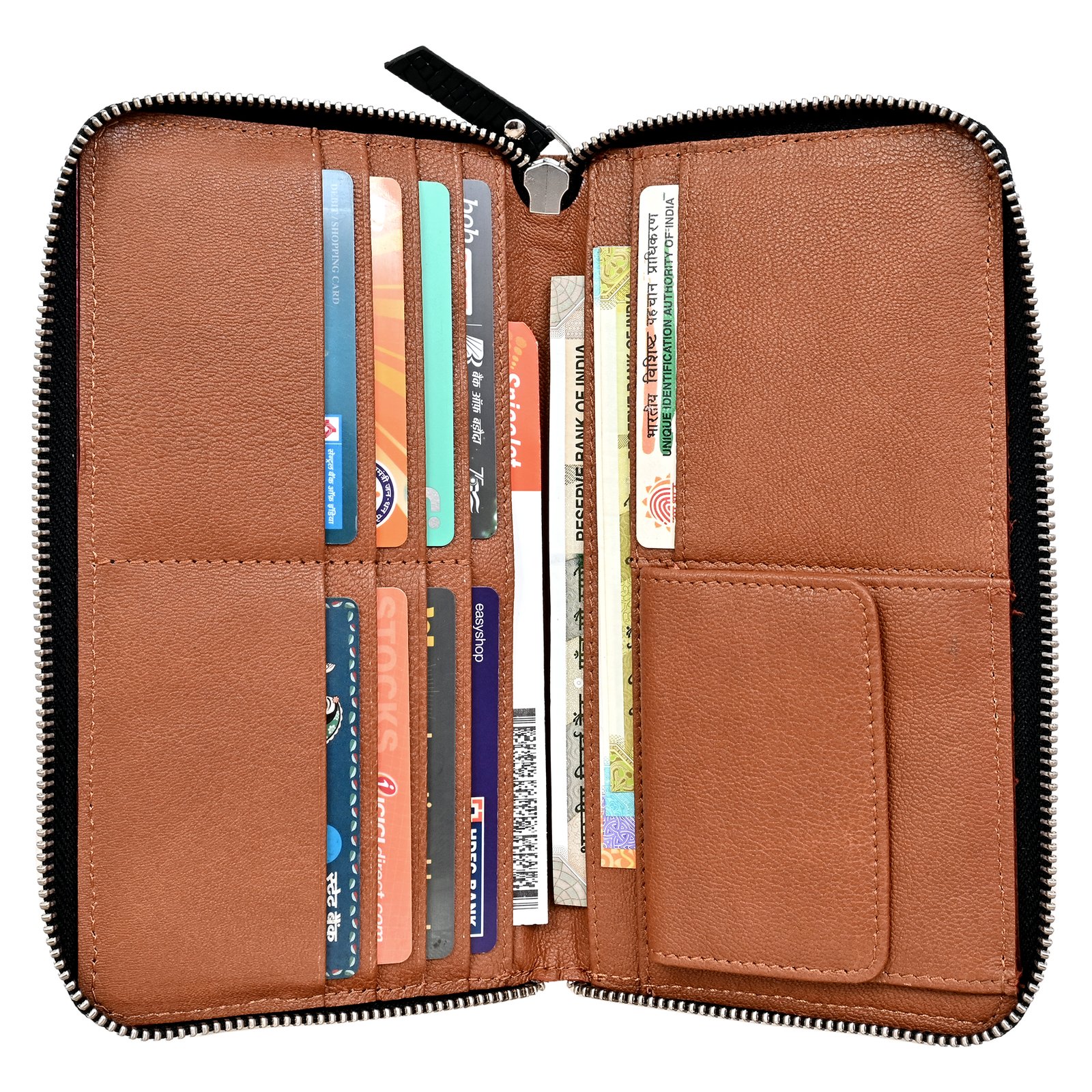 Ladies Clutch, Top Grain Leather,Zip Closer, Multiple Card Slots with Coin Pocket, RFID Protected