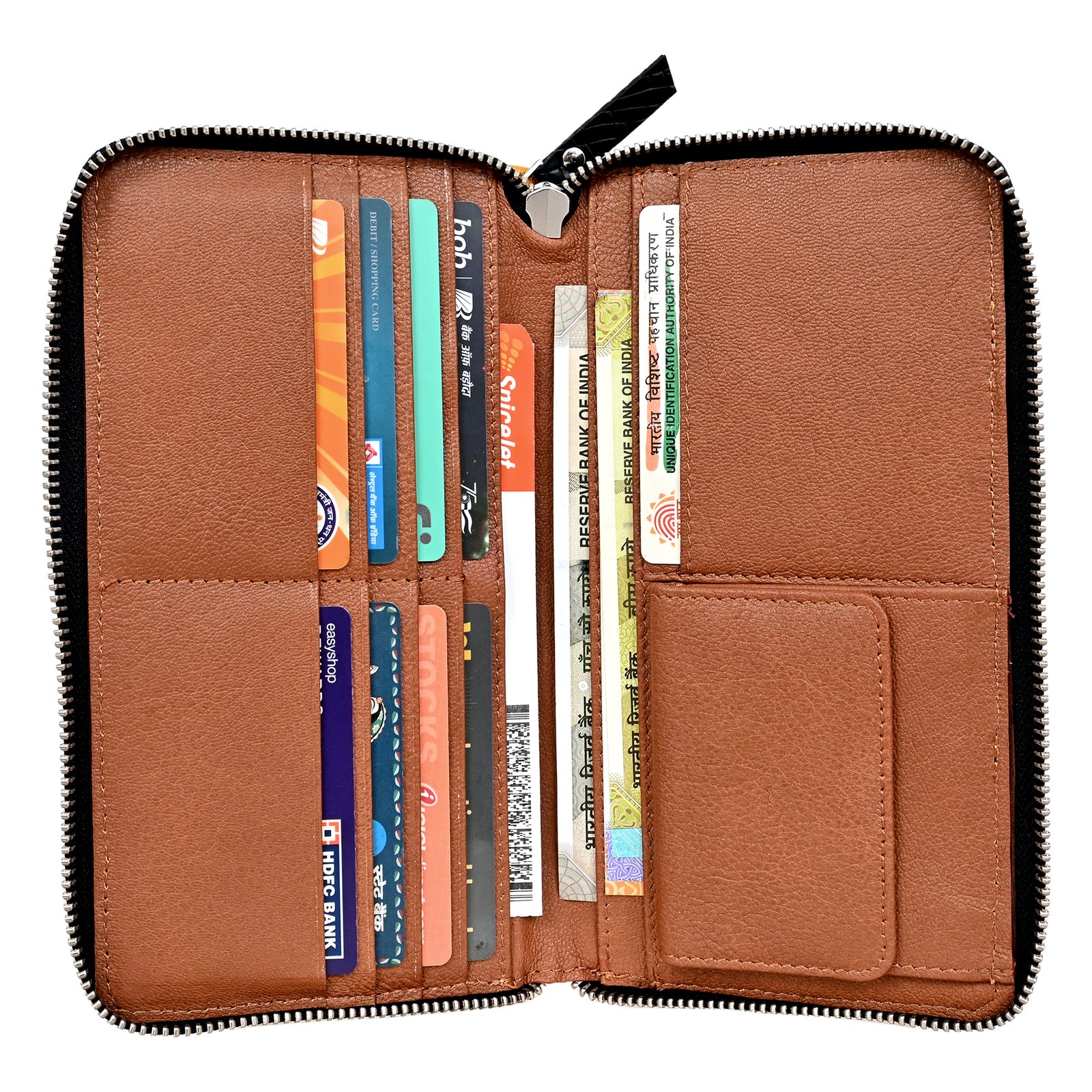 Ladies Clutch, Top Grain Leather, Zip Closer, Multiple Card Slots with Coin Pocket, RFID Protected