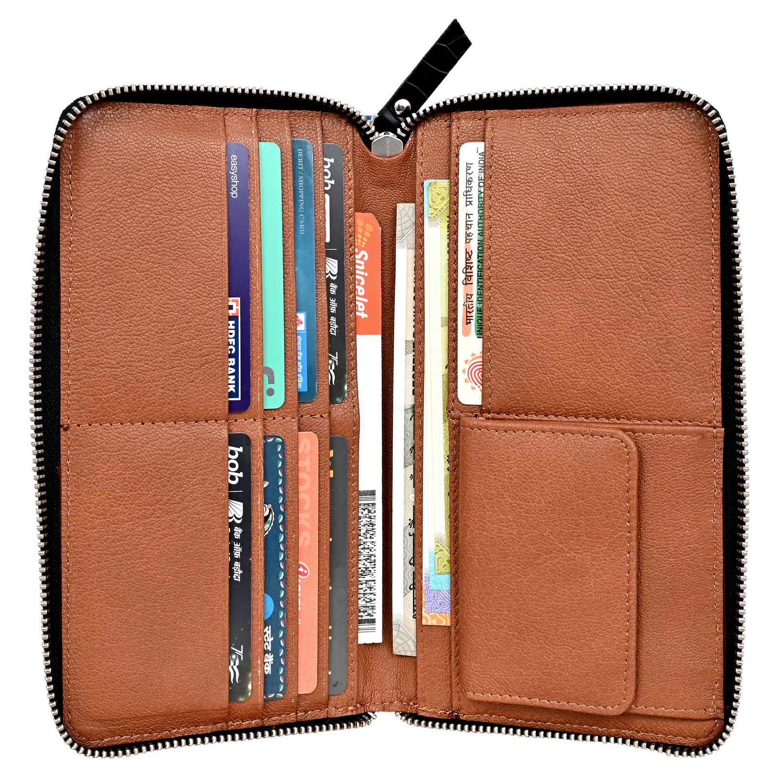 Ladies Clutch, Top Grain Leather, Zip Closer, Multiple Card Slots with Coin Pocket, RFID Protected